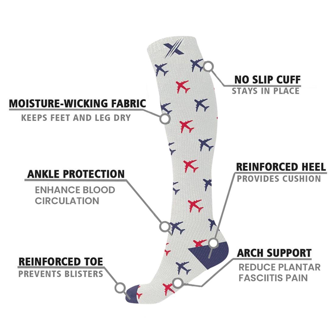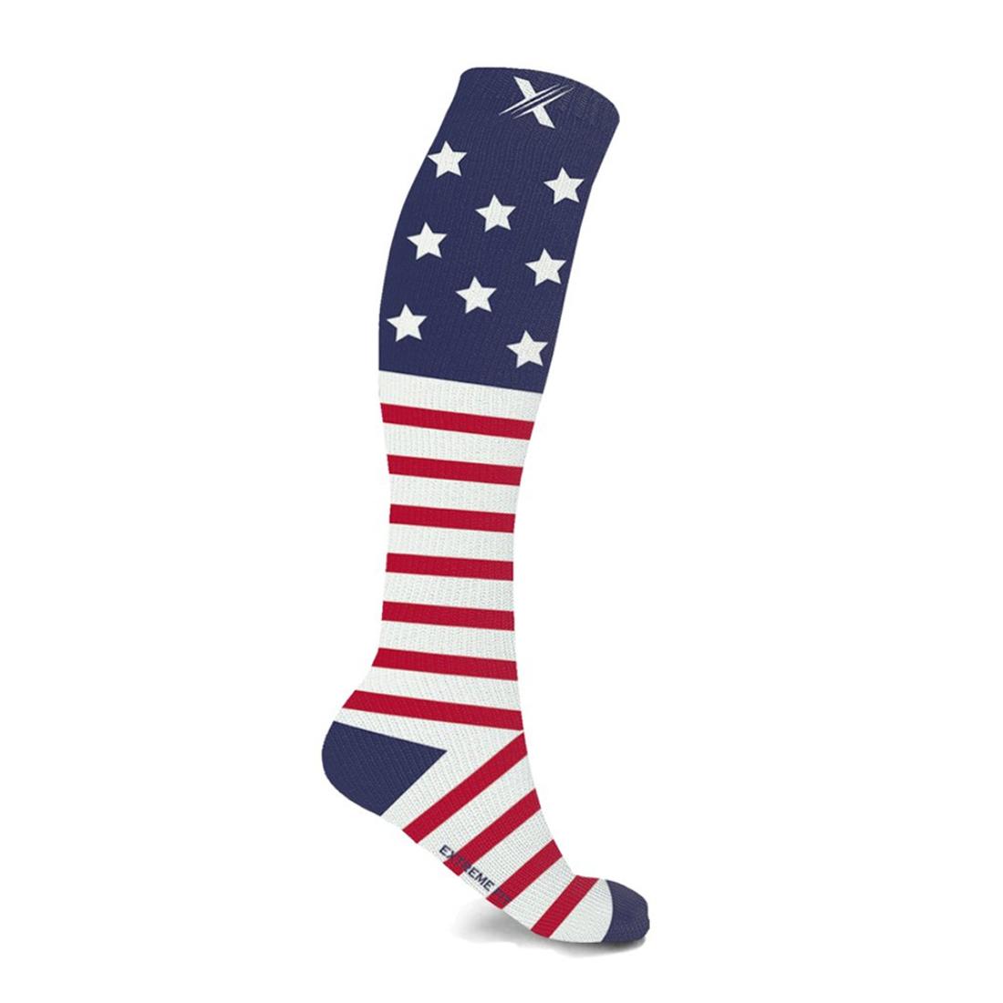 Step into patriotic pride and comfort with these quality knee-high compression socks. Designed to improve circulation, reduce swelling, and relieve aches and fatigue, these socks are ideal for running, cycling, travel, pregnancy, and more.
