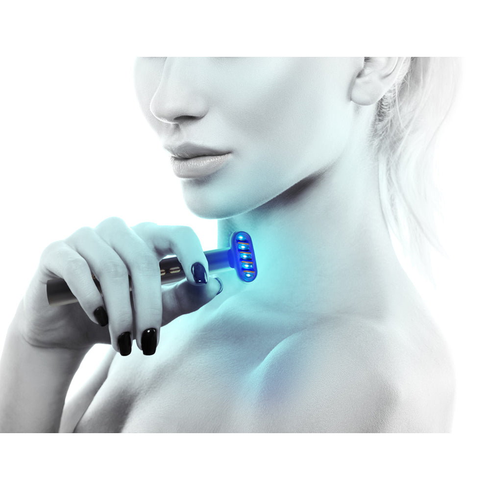 The 6-in-1 Beauty Therapy Wand delivers a spa-like experience at home through dual LED light therapy (red and blue), thermal, and vibration technologies. It targets all major concerns—fine lines, wrinkles, puffiness, and sagging—on the face, neck, and around the eyes.