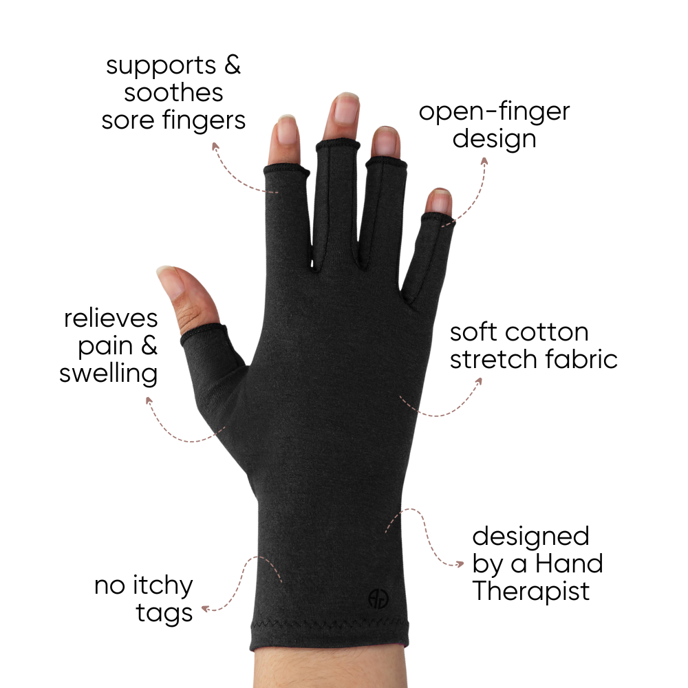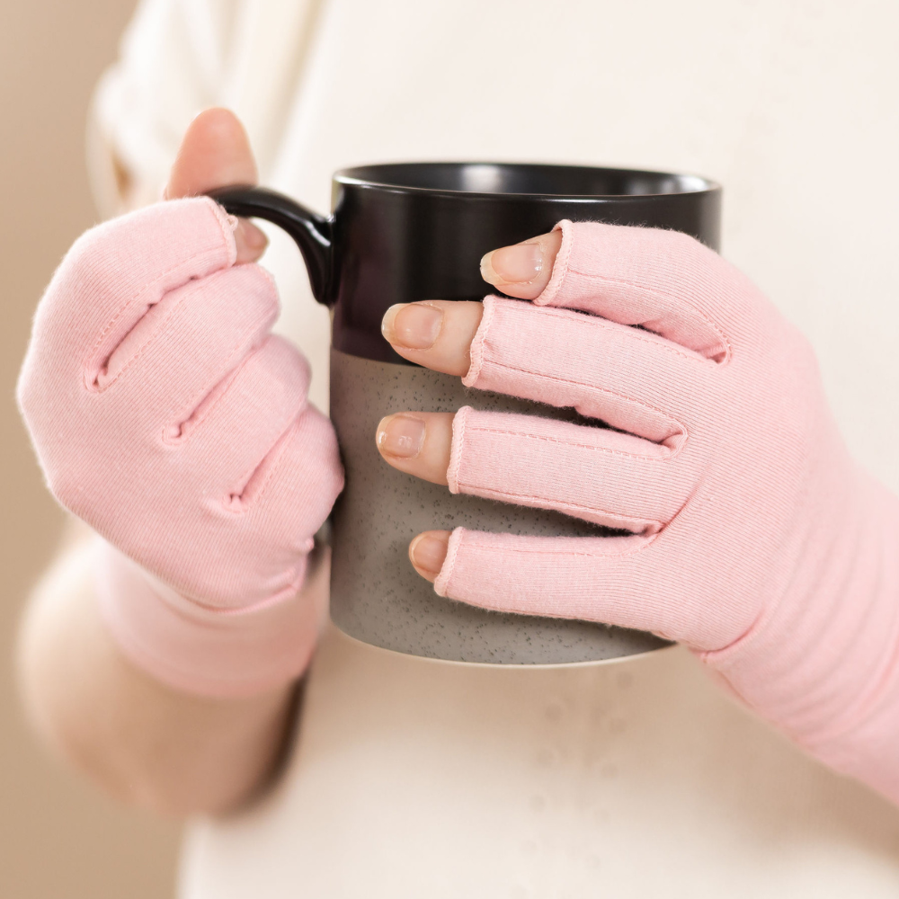 These soft, cotton-stretch Compression Gloves give a gentle hug to your hand. They support sore joints and help reduce pain and swelling, making them ideal for people living with chronic joint pain conditions like arthritis, trigger finger, or RSI.