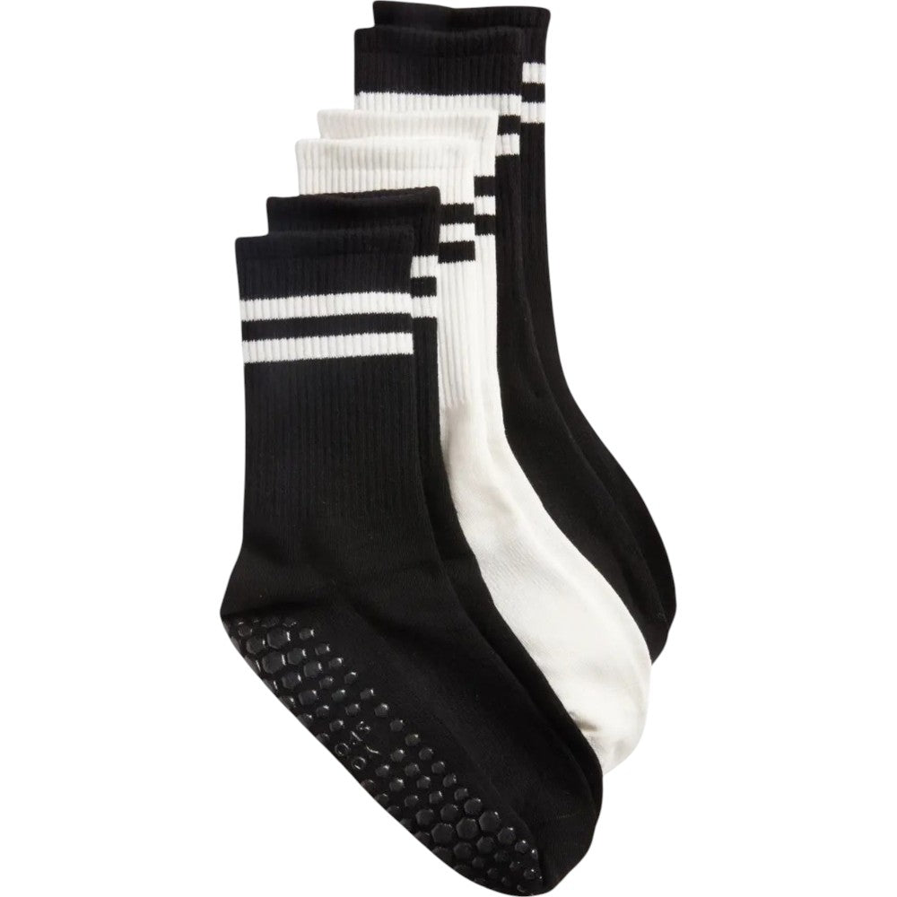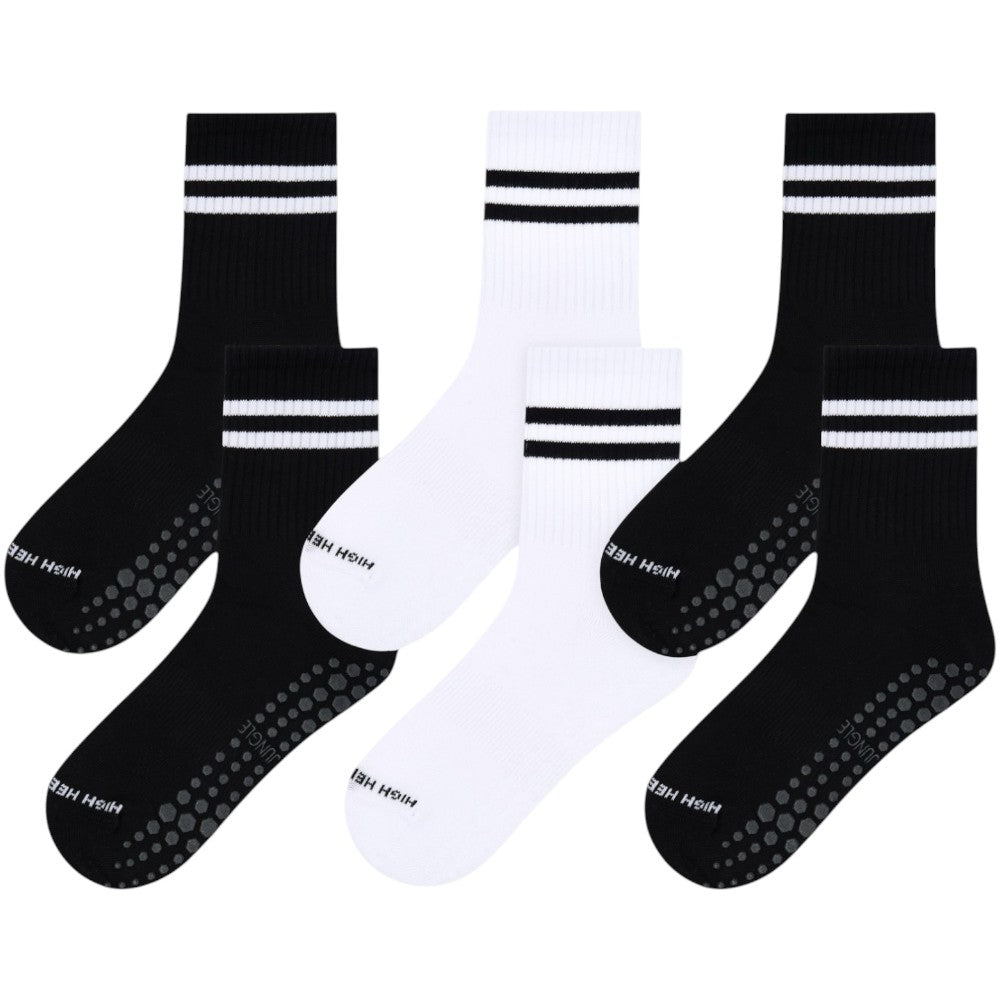 These socks are designed for Pilates and yoga lovers, by Pilates and yoga lovers. They combine a full-sole silicone grip and elevated support with a chic, stylish design. Made from quality, breathable cotton, these socks feature a seamless toe for comfort, arch support, and a ribbed ankle that provides light compression to stay in place and boost circulation.