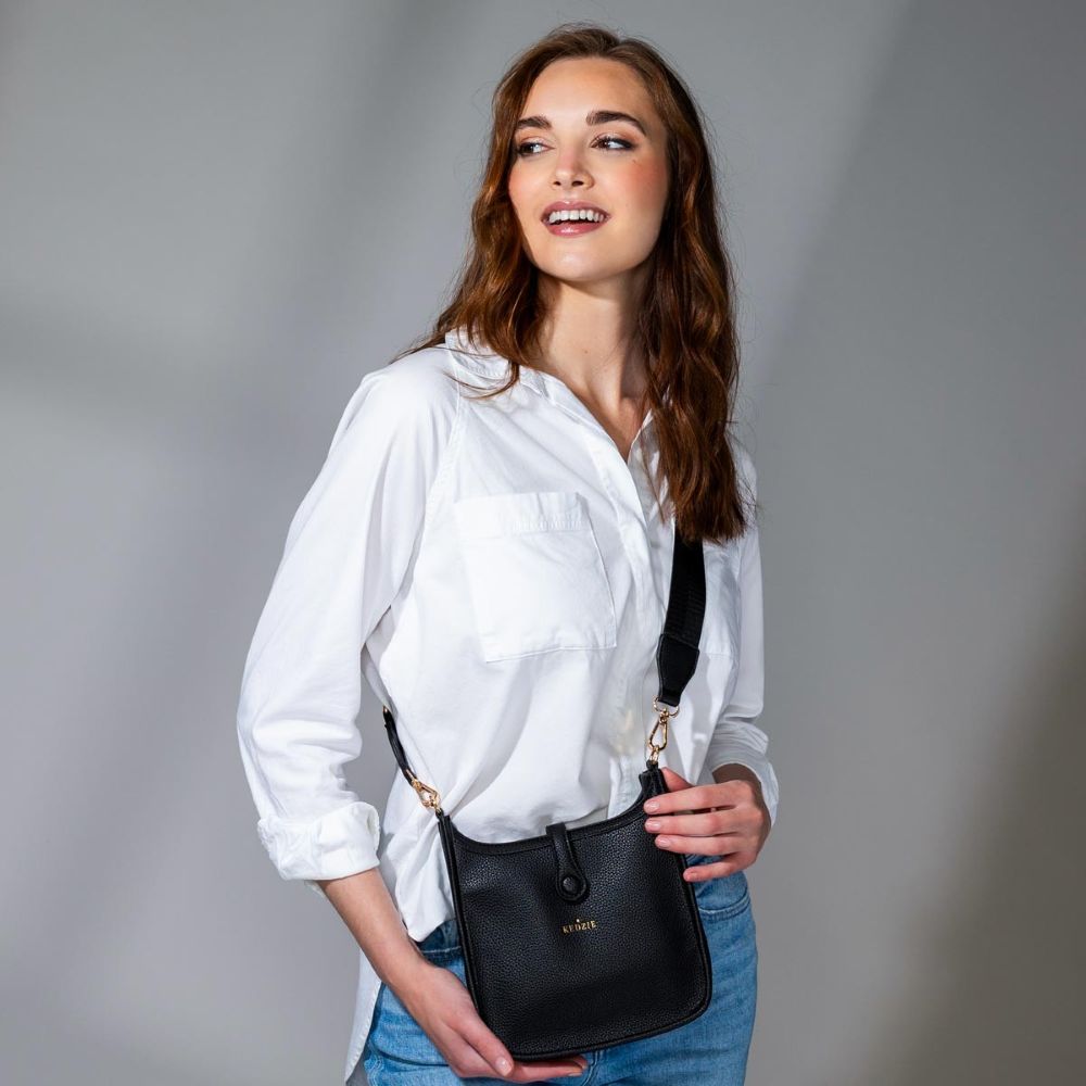 Beautifully designed to go with everything. This ultra-soft vegan leather crossbody features a snap-over strap for elegant style and added safety. Wear to the office, brunch, date night, and everywhere in between.