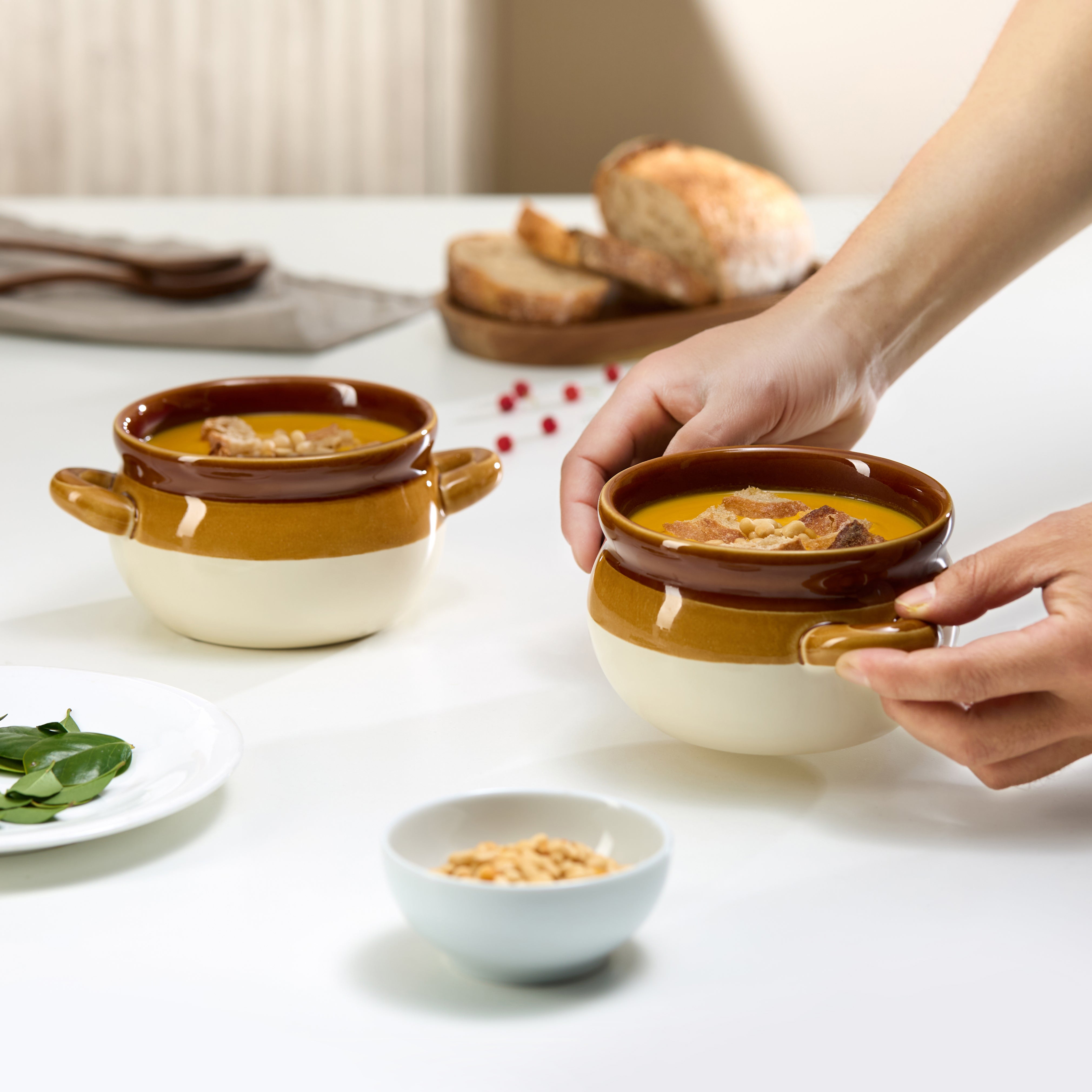 Bring comfort and style to the table with these classic ceramic French onion soup crocks. Sized for individual servings, they transition seamlessly from oven to table, making them ideal for soups, stews, casseroles, and more. Each crock combines durability, function, and rustic charm for everyday or special occasions.