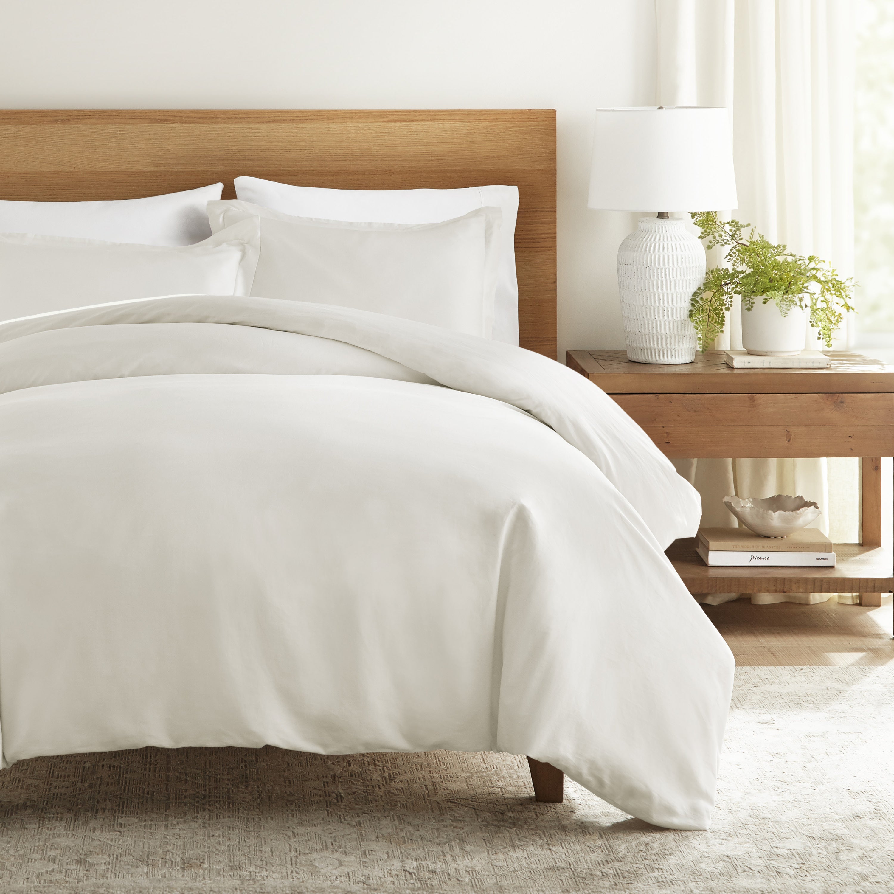 Transform your bedroom with the Long-Staple Cotton Duvet Cover Set. Made from luxurious, 300 thread count, 100% sateen cotton, this set is brushed and washed for an ultra-soft, smooth feel. Experience the ideal blend of comfort and style with this duvet cover set, designed to provide a cozy, restful night's sleep.