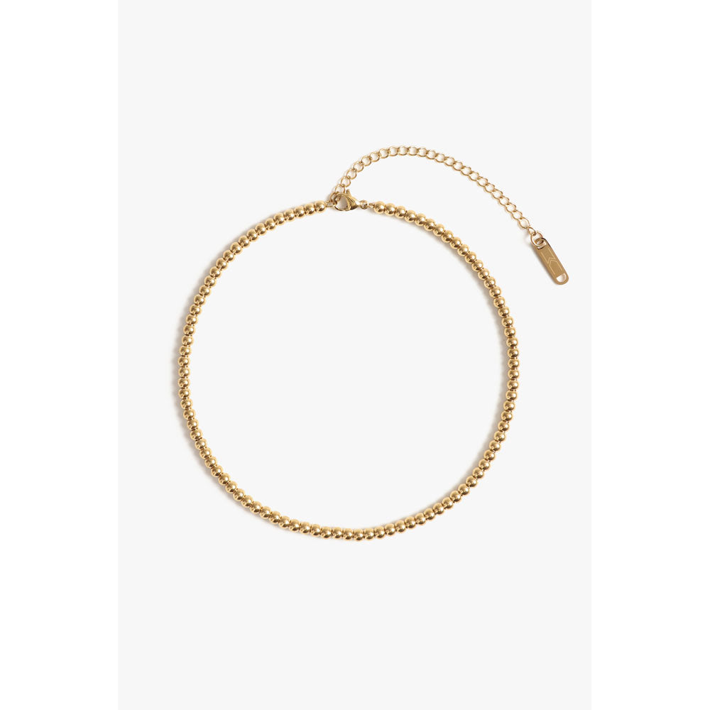 The Crown Choker features smooth, round beads strung on a delicate chain for a comfortable, long-lasting fit. Simple yet stylish, it's ideal for adding a touch of sophistication to your everyday look.