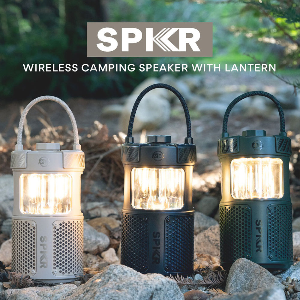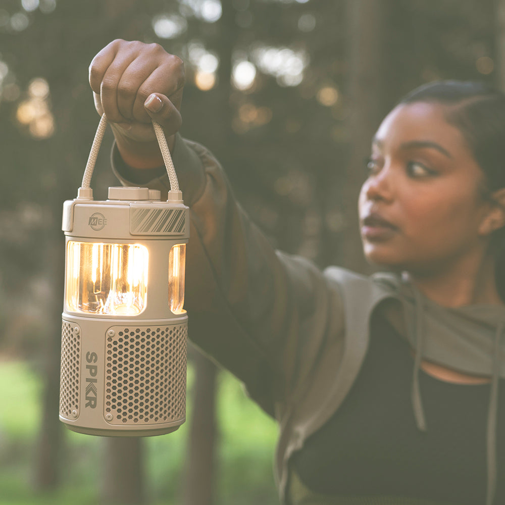 Bring your soundtrack to the great outdoors with the lightSPKR, which combines a powerful 360° Bluetooth speaker with a dual-mode, dimmable camping lantern. The built-in speakerphone, power bank, and IPX6 water resistance make it an ideal accessory for your outdoor adventures.