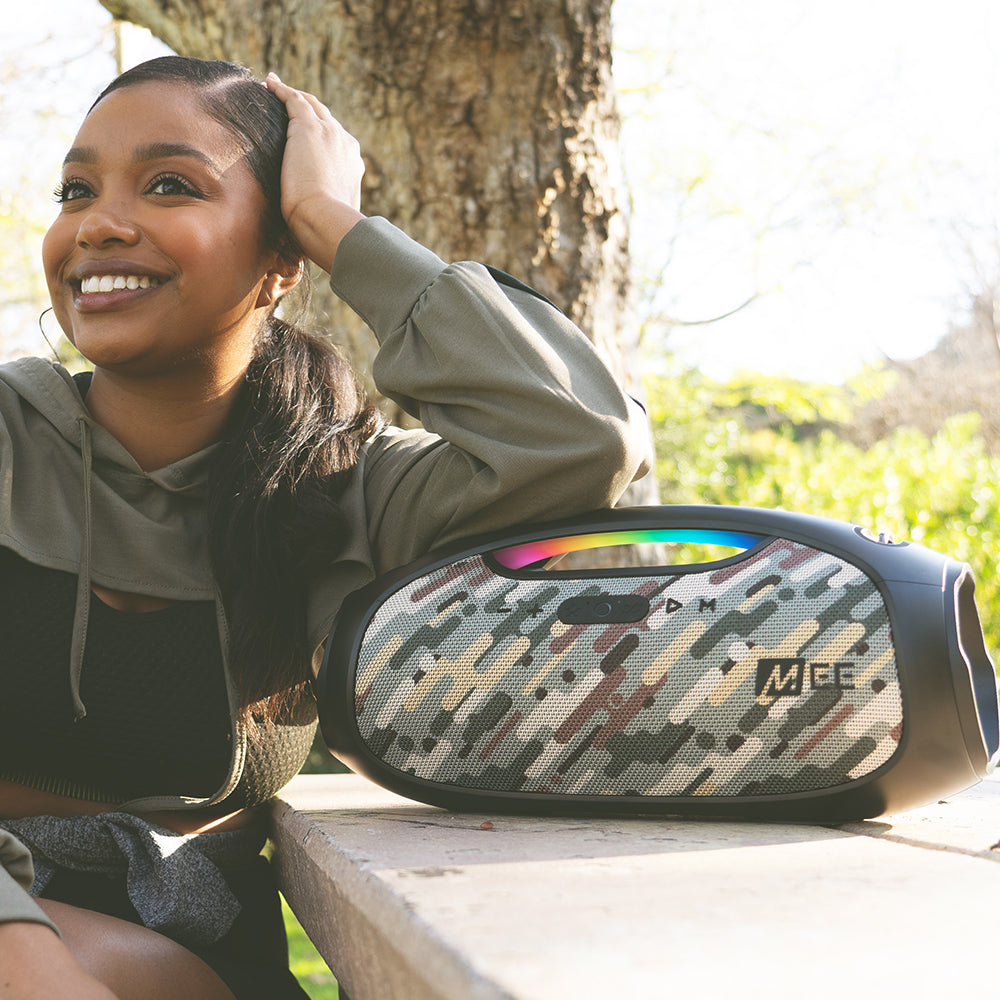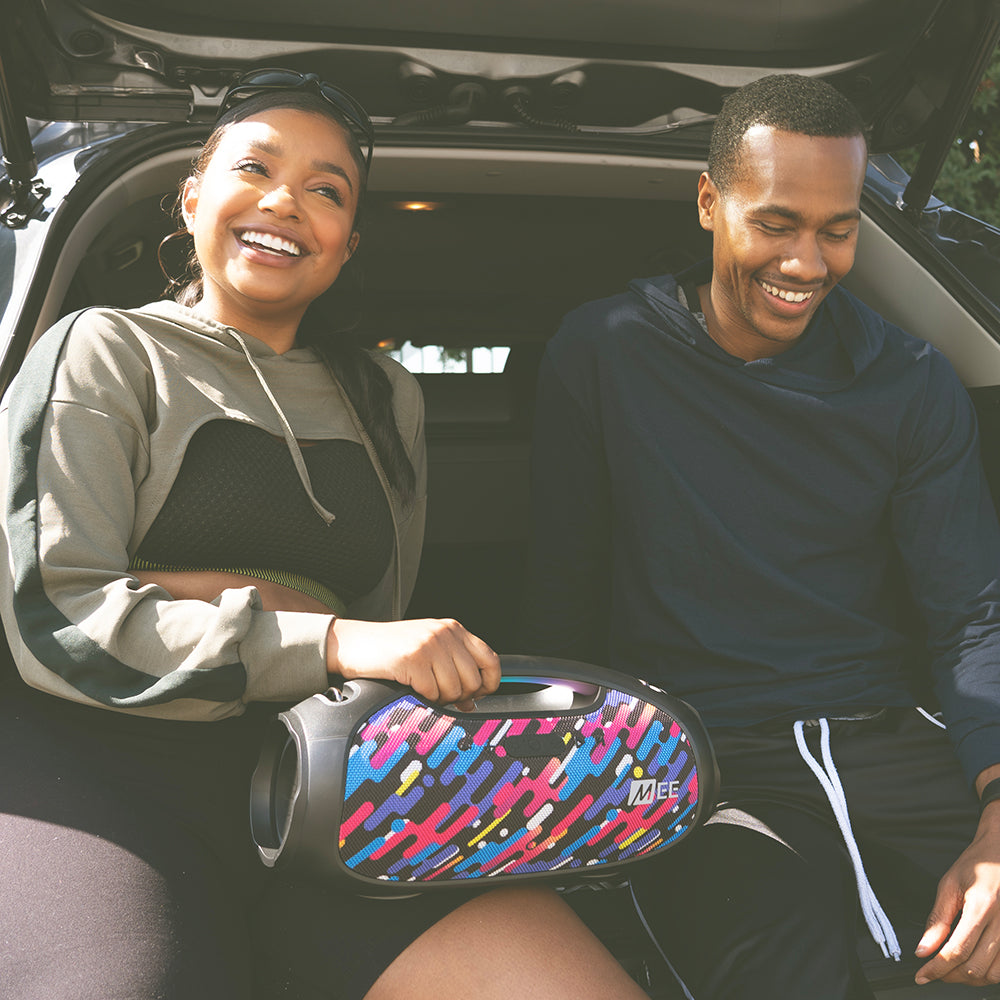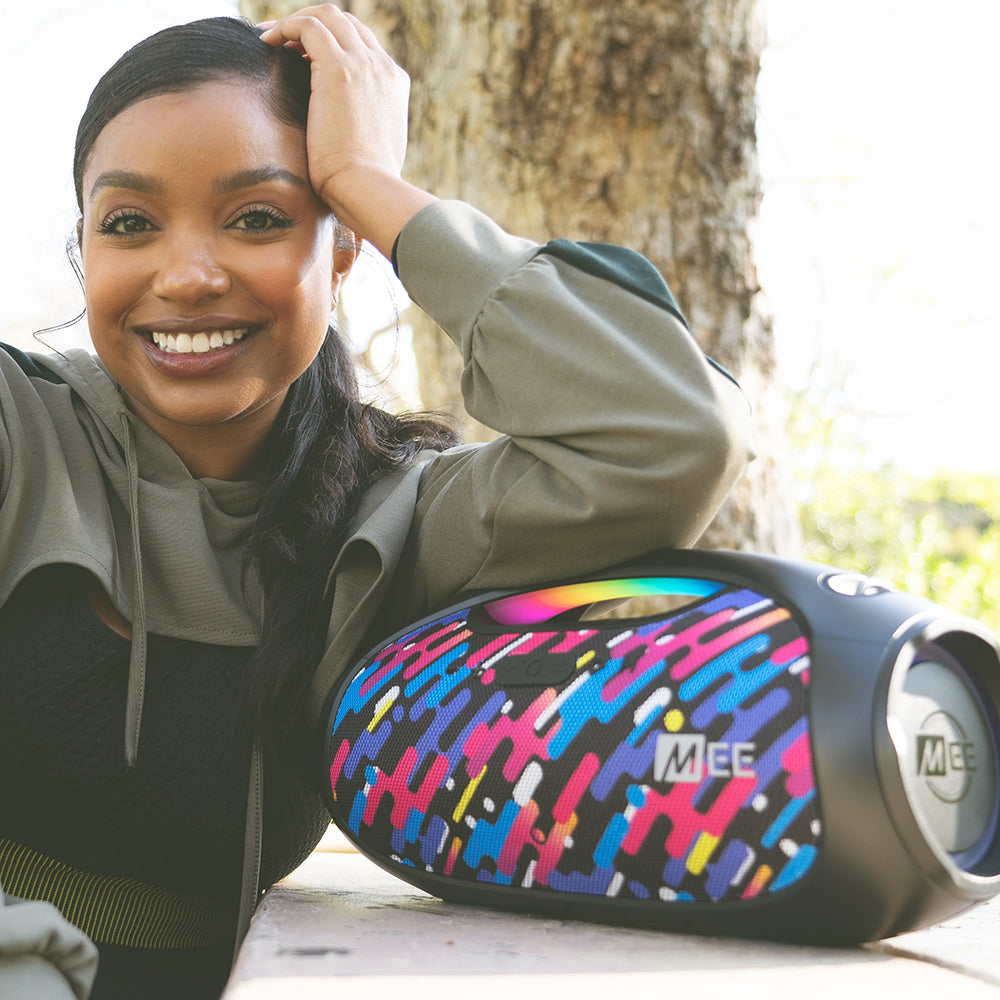 Bring your party to life! The partySPKR integrates eight different LED light modes, the ability to connect up to 1,000 partySPKRs together to play in sync, and a signature sound with three unique audio modes. The built-in power bank, microphone, and three audio input options add convenient functionality, making this the ideal speaker for any occasion.
