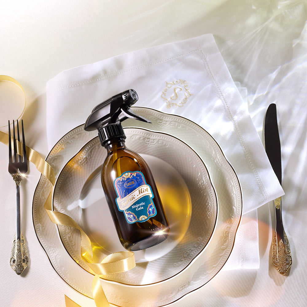 Refresh your world with the Fabric Mist infused with the enchanting scent of osmanthus flowers, white magnolia, lush sparkling rosé, and creamy sandalwood. A light spritz instantly uplifts linens, clothes, and spaces with a festive fragrance that lingers like an elegant celebration.