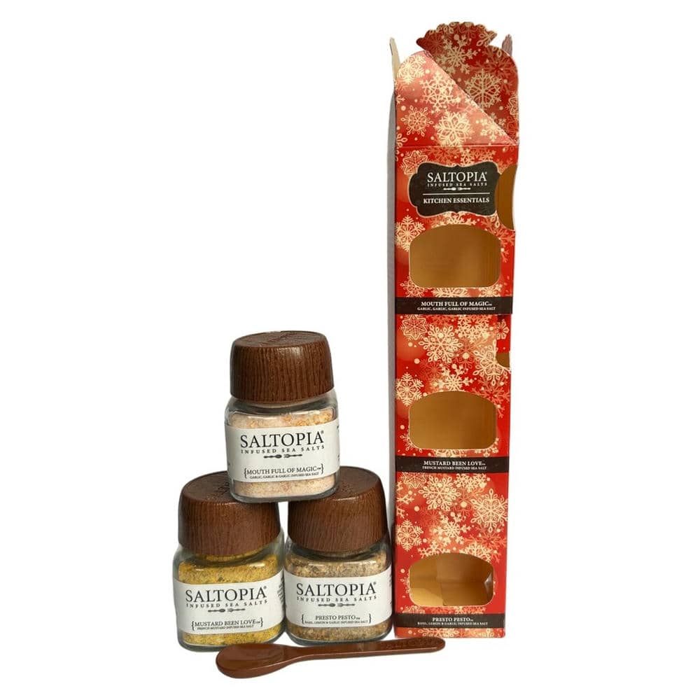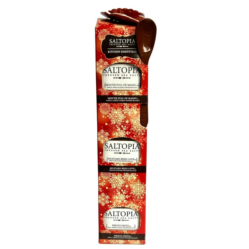 For the professional gourmet or the novice, first-time cook, this gift offers the pantry’s most essential flavors. This beautiful three-jar tower includes flavors such as roasted garlic, French mustard, and creamy pesto bursting with basil. Plus, there are six corresponding recipes printed directly on the packaging and a signature spoon for sprinkling.