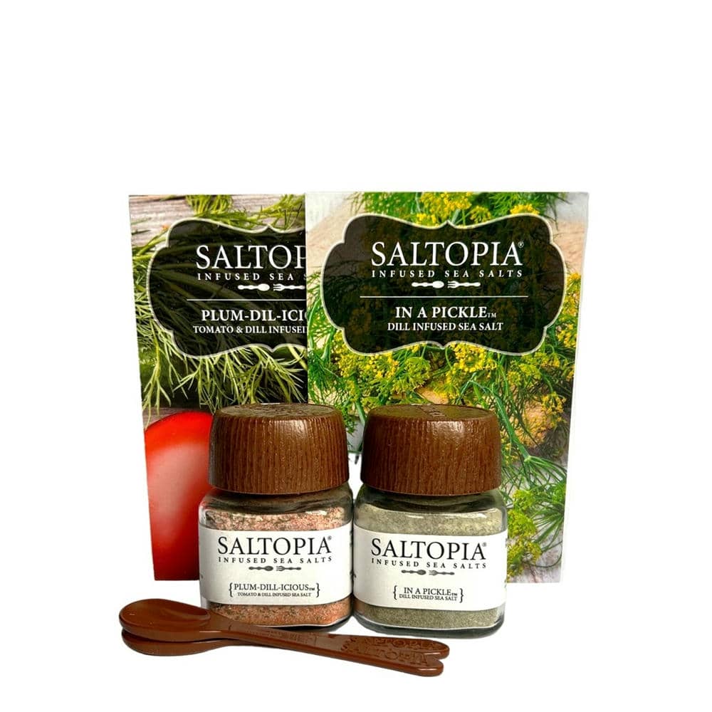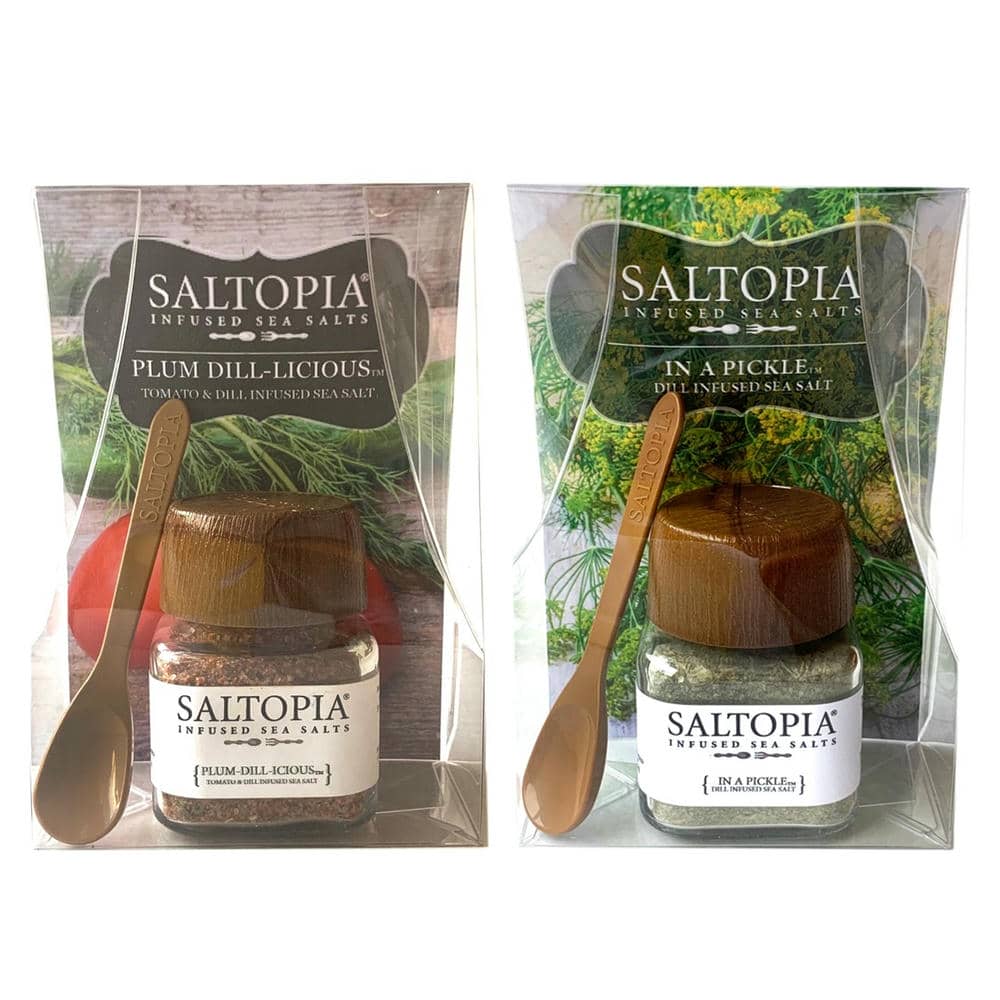 The distinct tangy, salty flavor of pickles comes from the actual brining process, because cucumbers don’t offer much flavor alone. SALTOPIA has captured the brine flavors and transformed them into everyday seasonings which stimulate taste buds in a highly desirable way. Both flavors in this set can be used across hundreds of recipes, from fresh salads and vegetable side dishes, to poultry and seafood. Each glass jar is beautifully packaged with its own recipe card and signature spoon for sprinkling. Either present the combination as a gift, or surprise two different recipients!