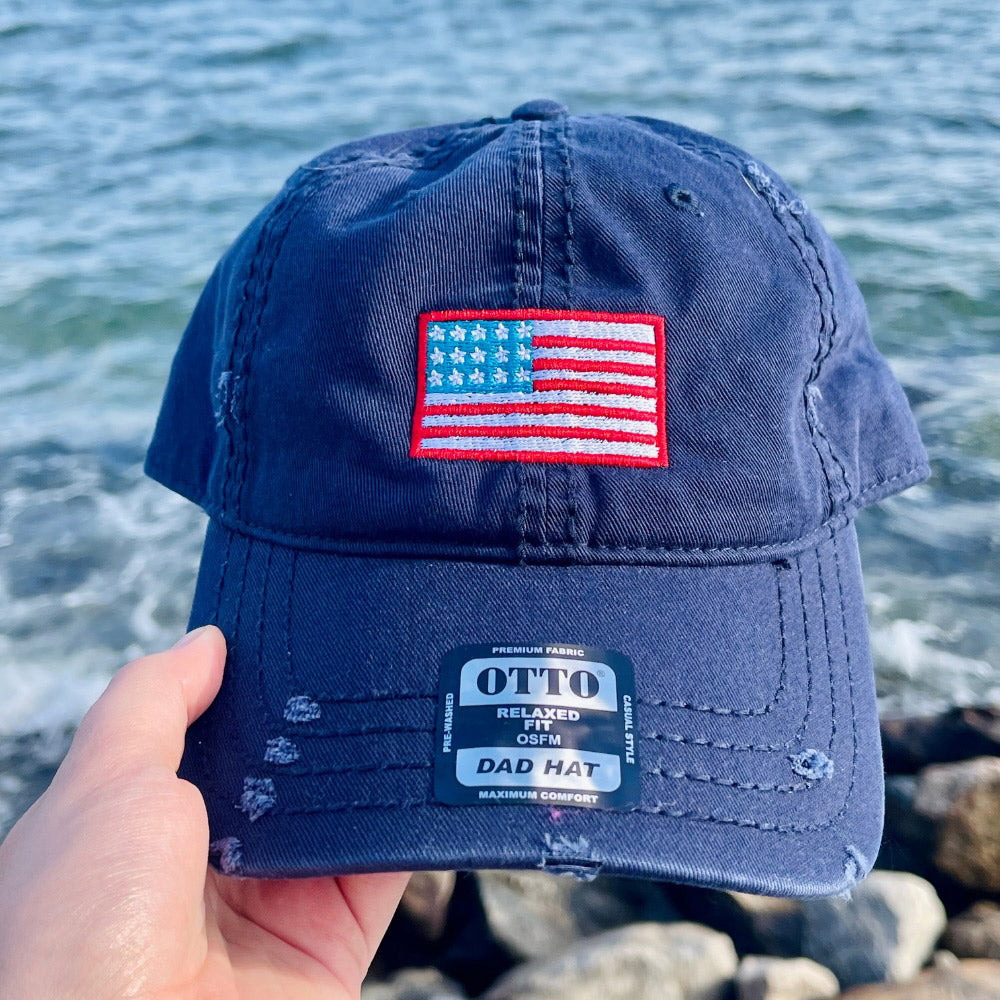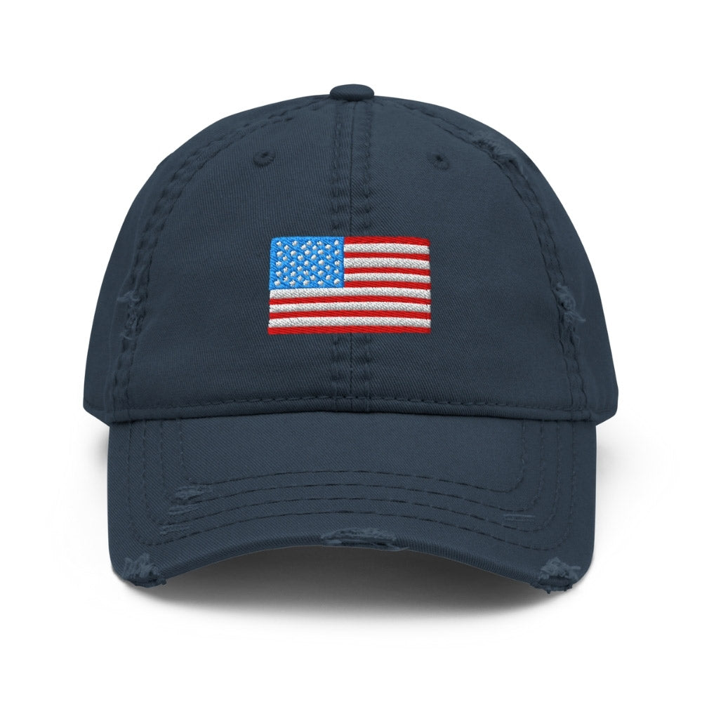Add effortless style to any outfit with this distressed dad hat featuring a custom embroidered design. The intentionally worn-in look gives this hat a vintage, lived-in feel that pairs great with casual wear, while the soft, unstructured crown provides all-day comfort.