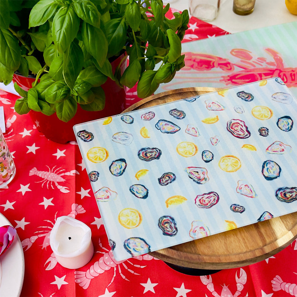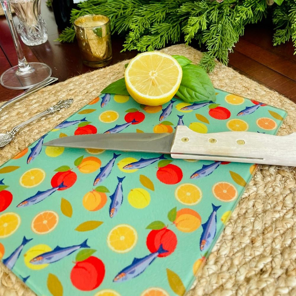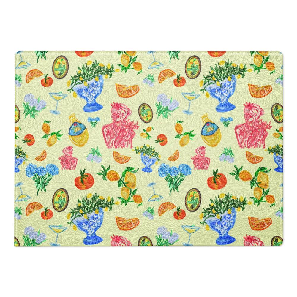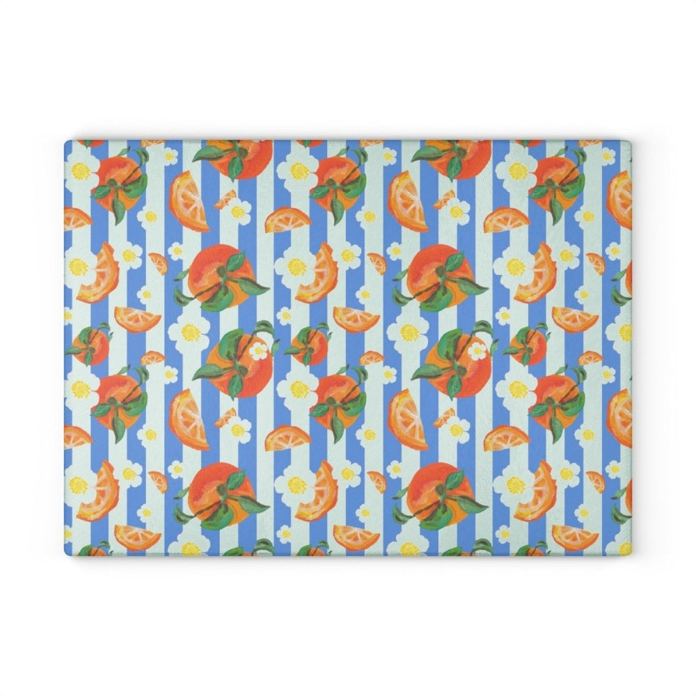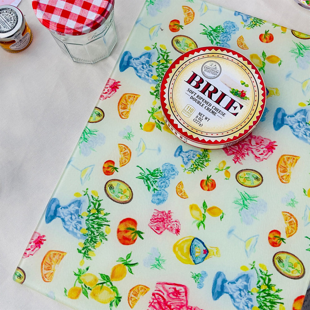 Elevate kitchen functionality and style with this custom-printed tempered glass cutting board. The durable surface doubles as a cutting board and heat-resistant trivet, protecting countertops from hot pots and pans, while the printed design on the underside stays protected from scratches. Ideal for food prep, serving cheese and charcuterie, or as a decorative kitchen accent piece.