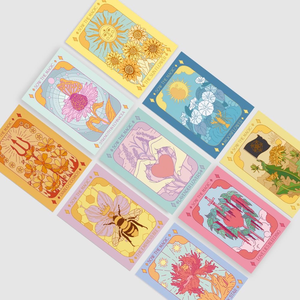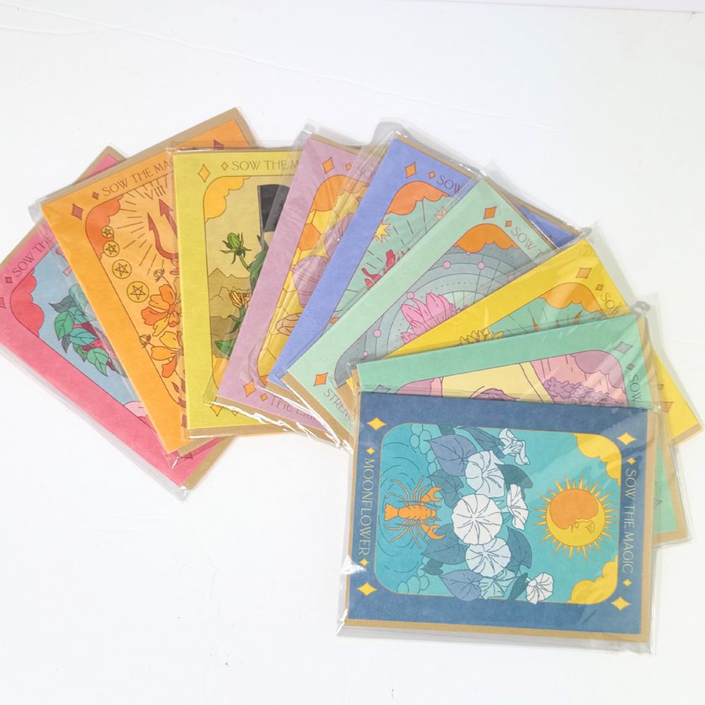 Send a little magic with every note. This set of nine Botanical Tarot Greeting Cards features vibrant illustrations inspired by the wisdom of plants and the symbolism of tarot. Ideal for birthdays, thank-yous, or just-because moments, each card carries a touch of enchantment and natural beauty.