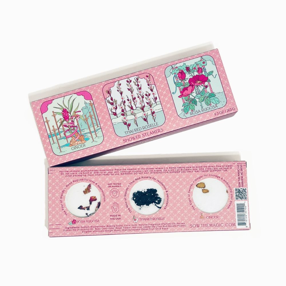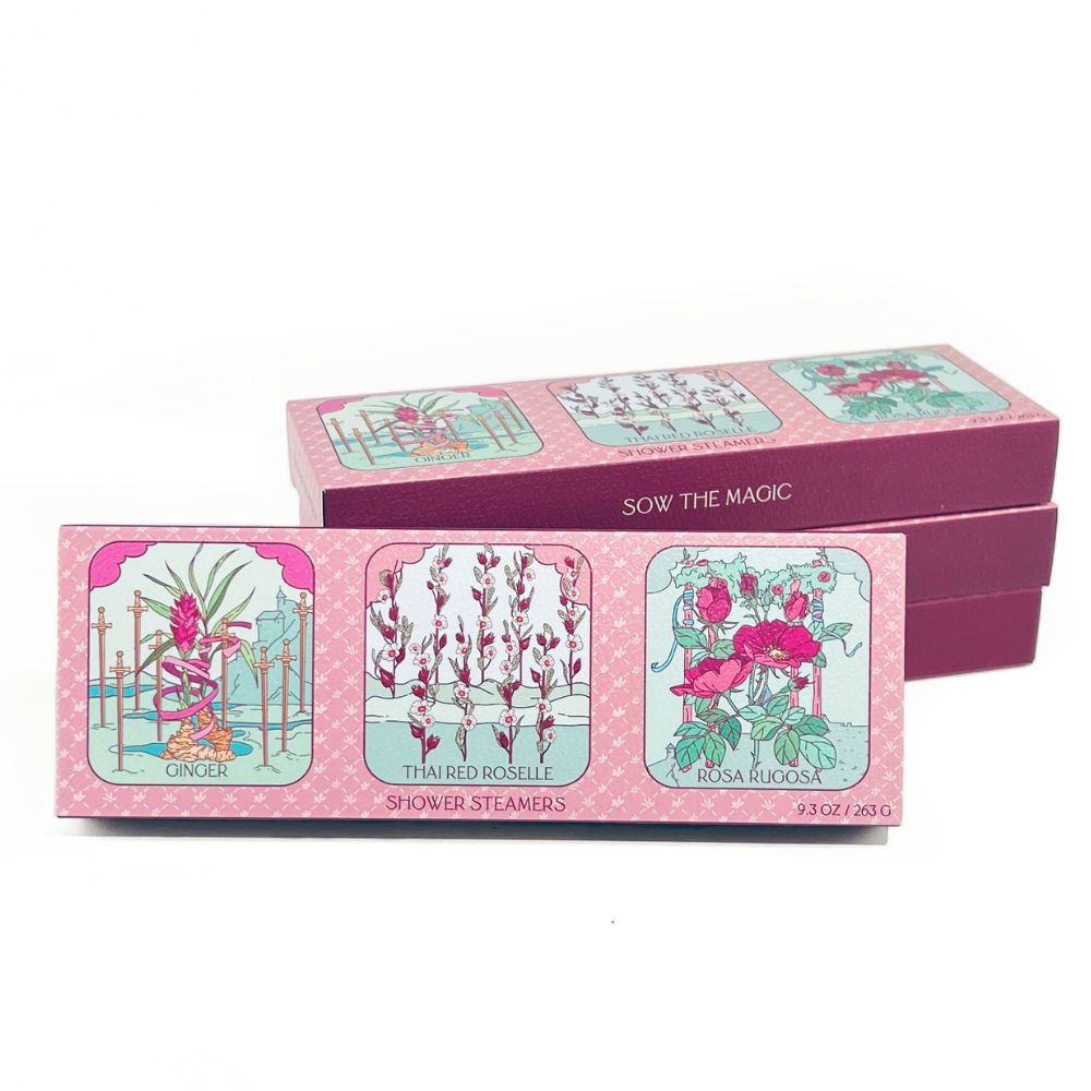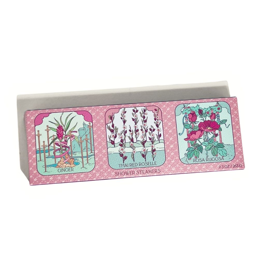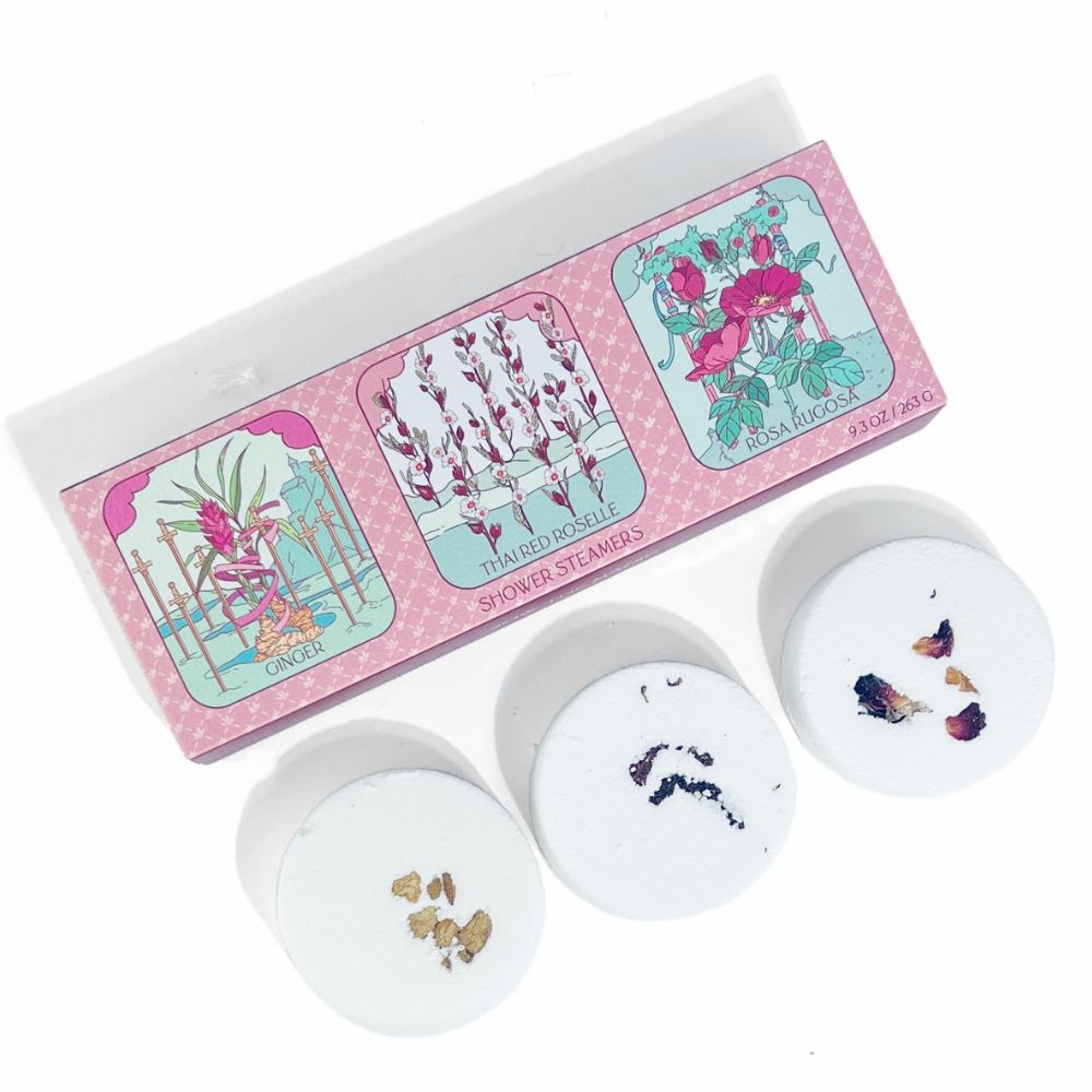 Transform your daily shower into a blooming oasis of calm. This trio of rejuvenating steamers is hand-blended with fragrant botanicals, releasing soothing aromatherapy as they dissolve in the steam. Breathe deeply, relax, and let the floral infusion melt away the stress of the day.