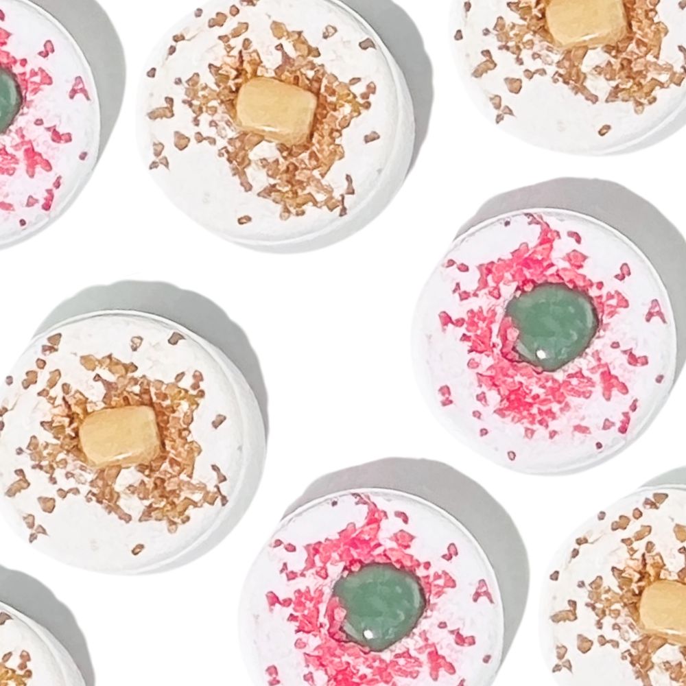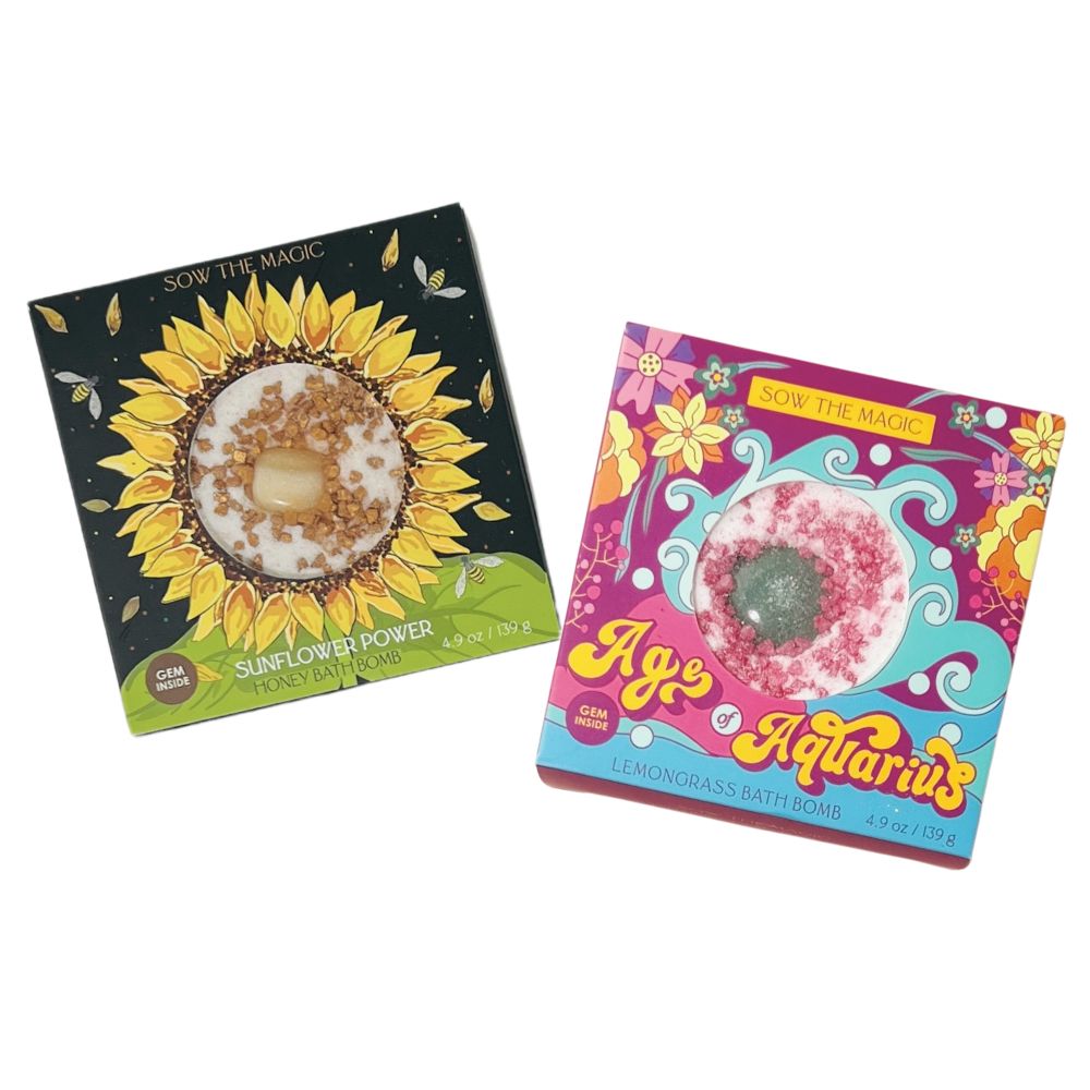 Relax and take your bathing ritual to new heights. Each gem-infused bath bomb is blended with natural fragrance and shea butter, and features a tumbled gemstone inside. Make every bath a moment of relaxation and magic.