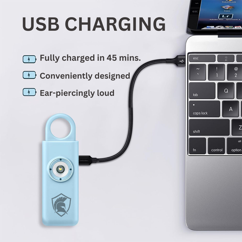 A rechargeable, lightweight self-defense siren that can go anywhere you do. This personal alarm can easily clip to your clothes or bag so that it’s always available to activate when needed. Keep this alarm close to provide peace of mind.
