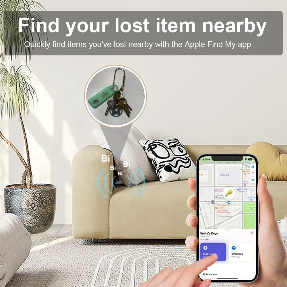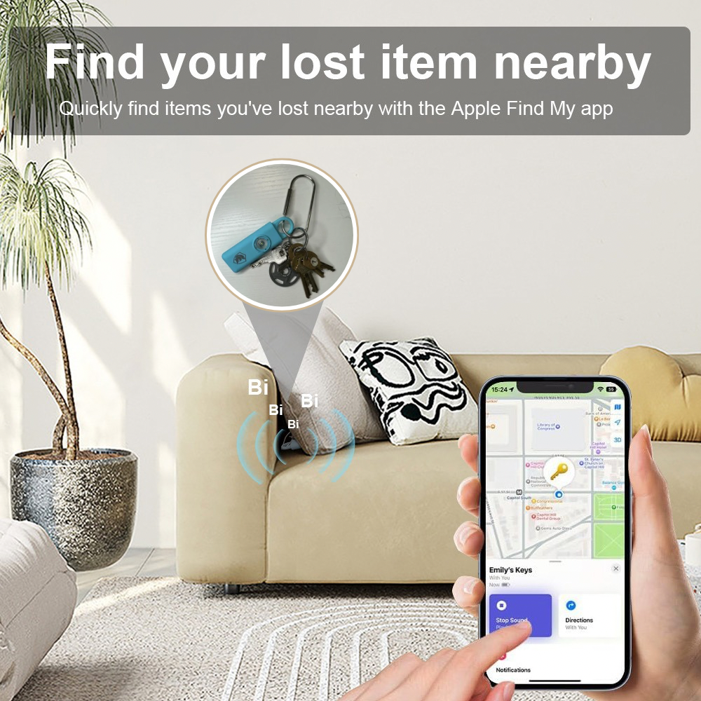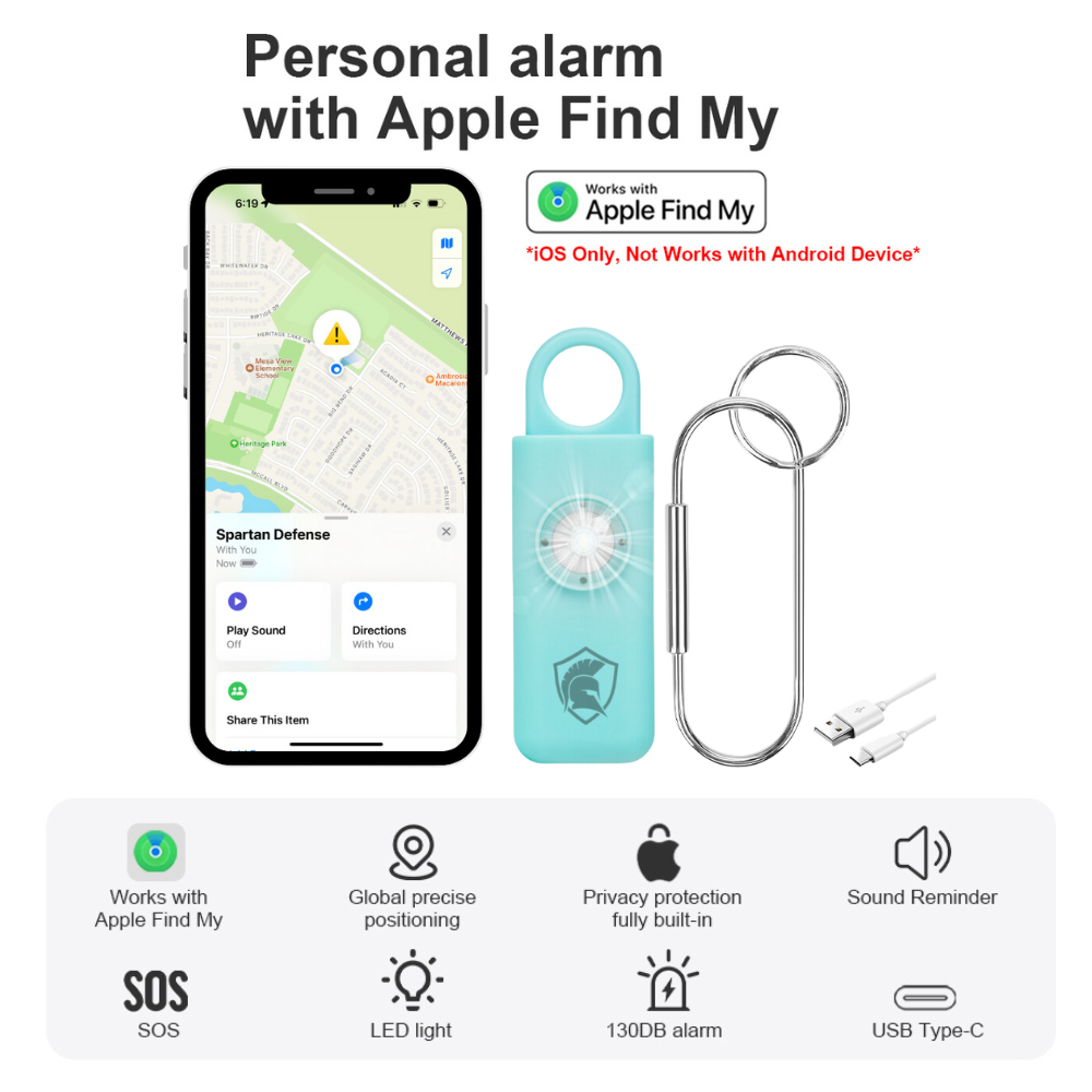 This dual-function tool combines a powerful alarm with Apple “Find My” app connectivity, making it an ideal accessory for personal safety and convenience. Stay safe and organized with this innovative personal alarm, designed to assist you with keeping track of your belongings and call for help when needed.