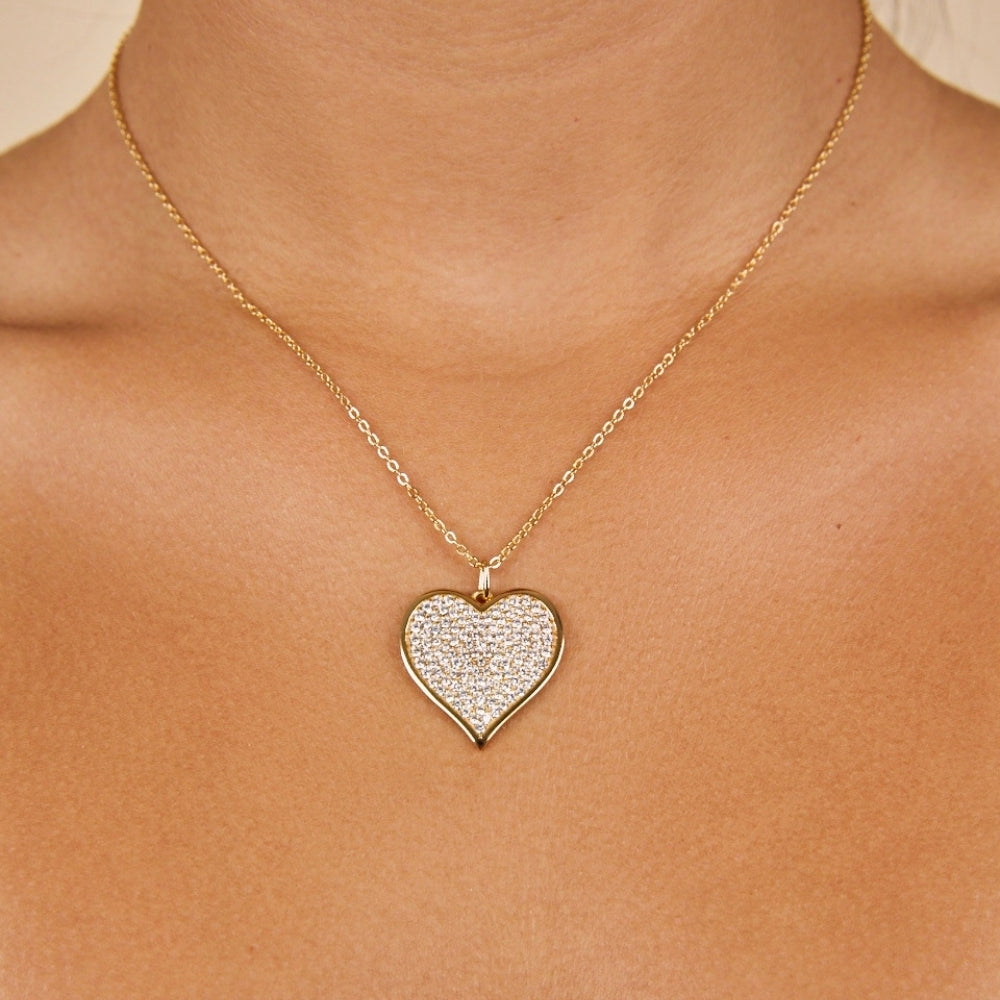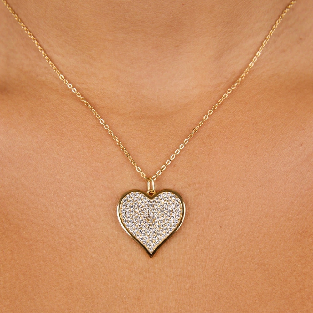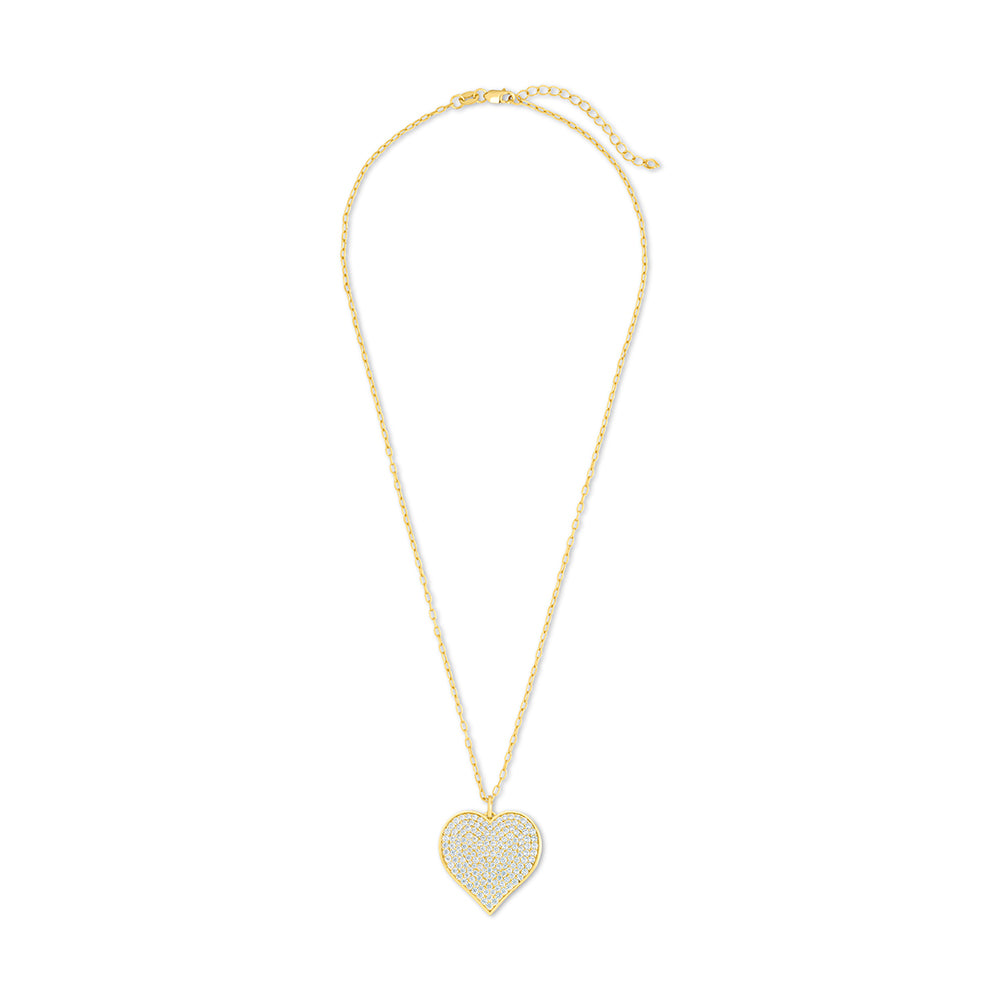 The Sterling Silver Large Heart Pendant Statement Necklace is all charm, no effort. Covered in tiny pavé CZ stones and finished with a sleek bezel edge, it’s playful, a little bold, and ready to be your everyday favorite.