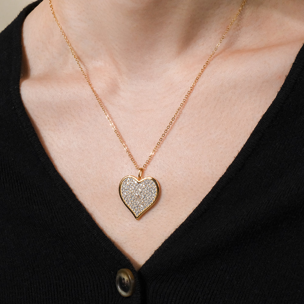 The Sterling Silver Small Heart Pendant Statement Necklace is all charm, no effort. Covered in tiny pavé CZ stones and finished with a sleek bezel edge, it’s playful, a little bold, and ready to be your everyday favorite.