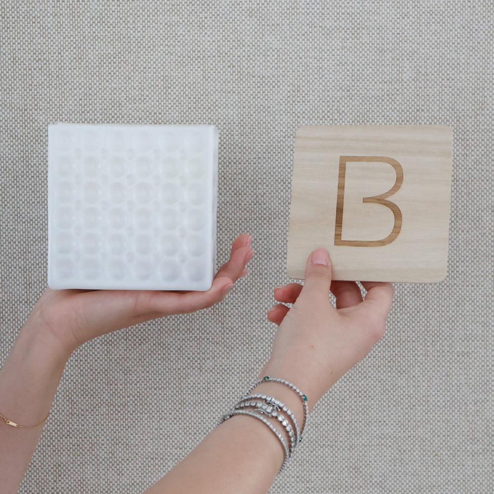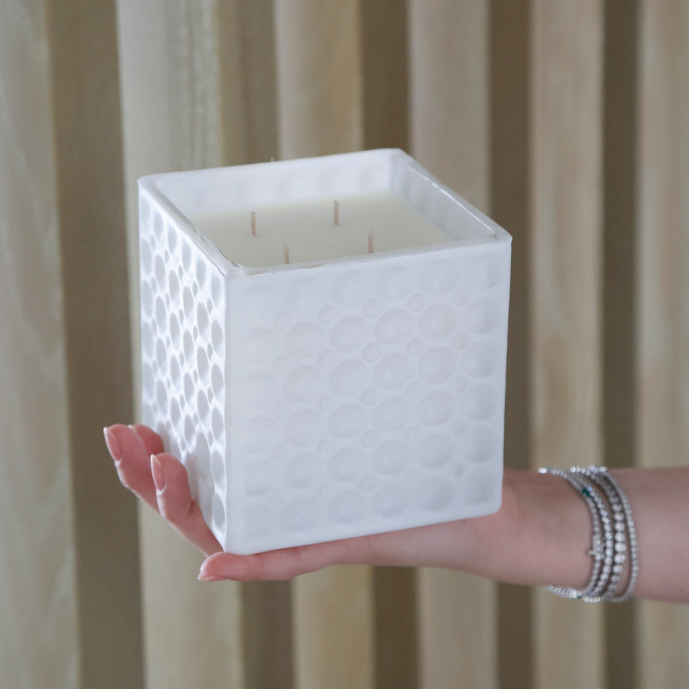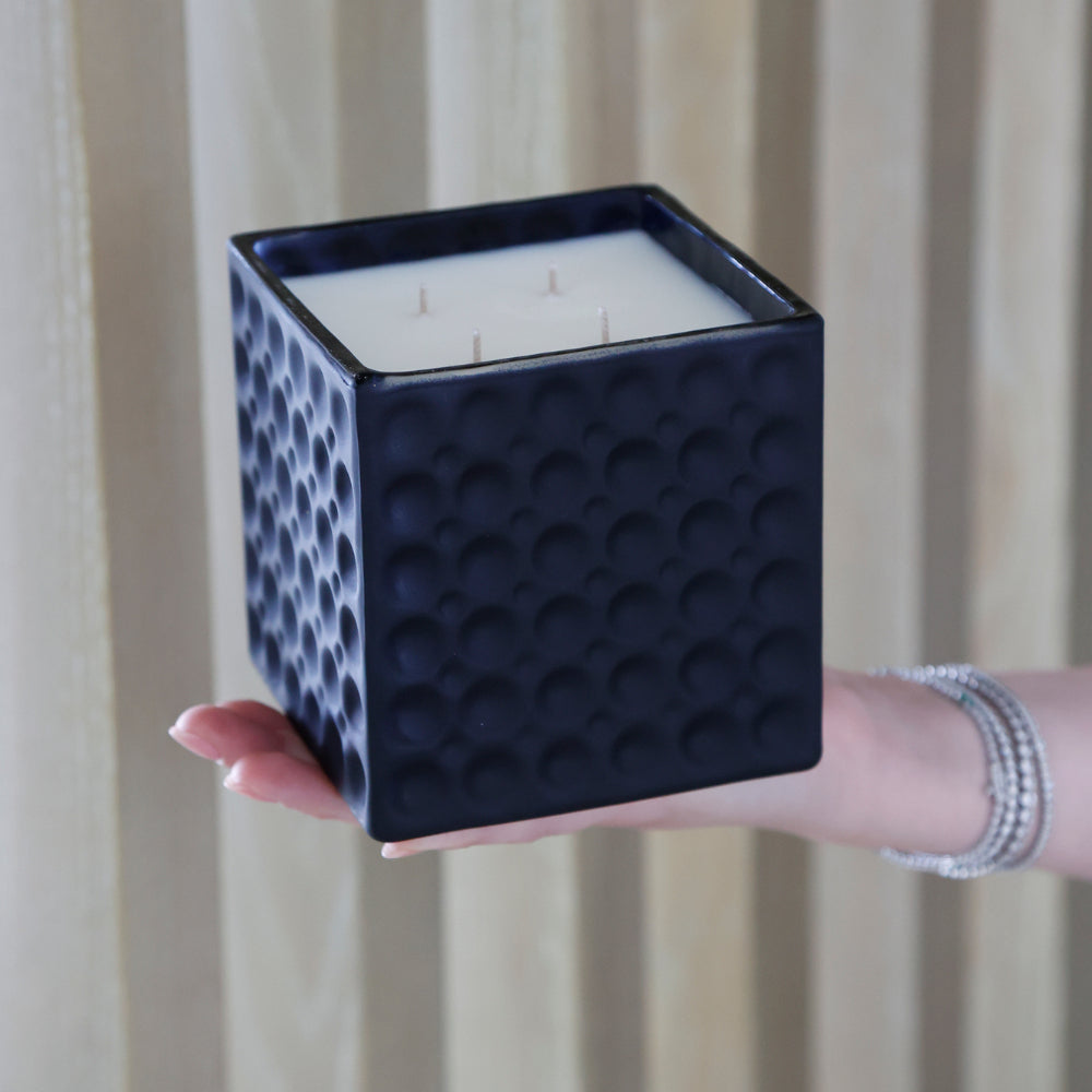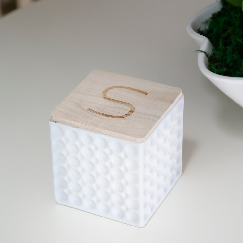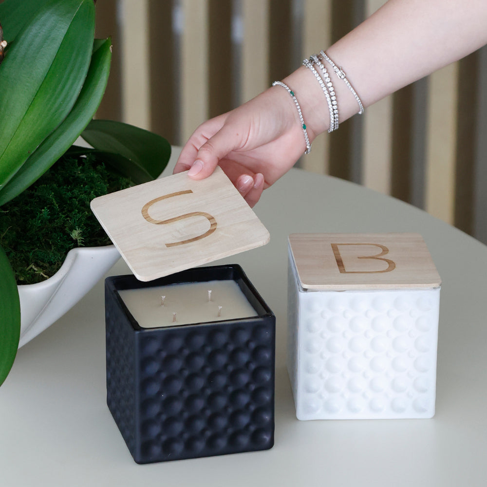 This elegant candle comes in a textured glass jar and includes a single monogram engraved on the wooden lid. The monogram is centered for a clean, timeless look, making this piece uniquely yours.