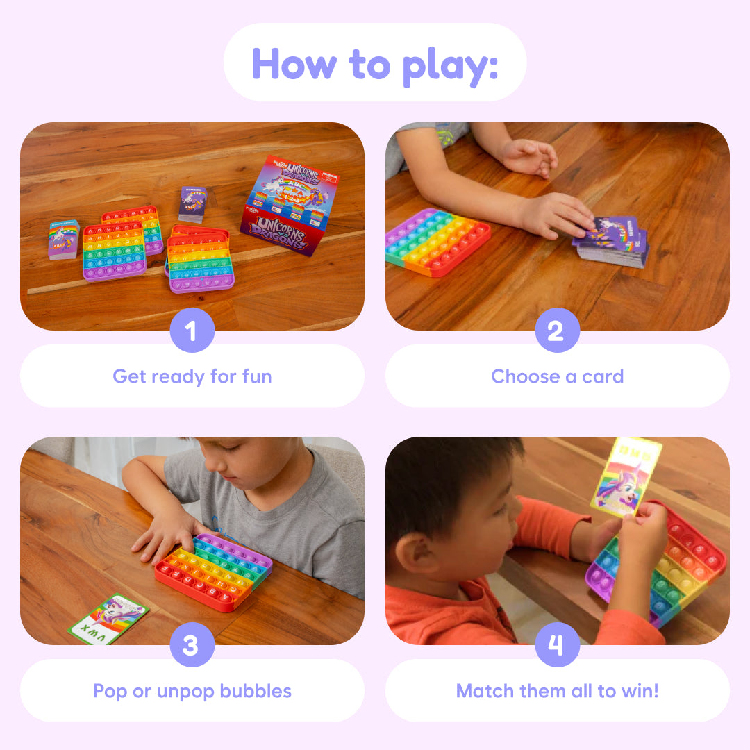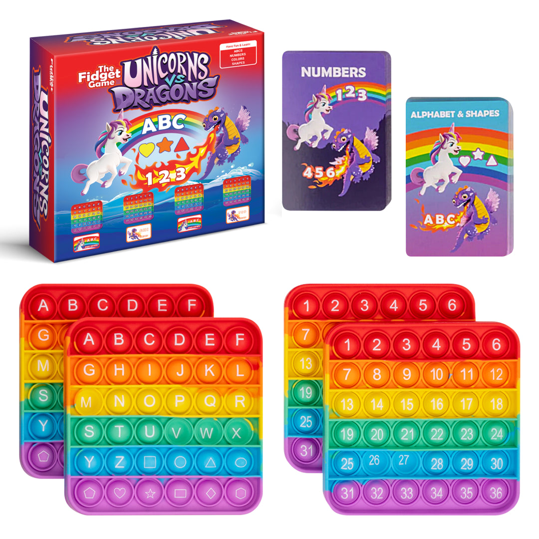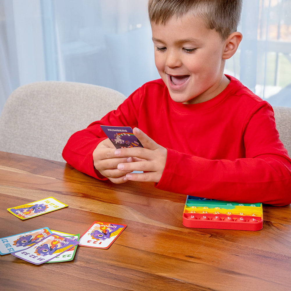 Unicorns vs. Dragons makes learning letters, colors, counting, and matching an enchanting adventure. With fidget mats and colorful cards, children engage in playful hands-on learning. Ideal for Pre-K and Kindergarten, this game strengthens early literacy and numeracy skills while sparking imagination.
