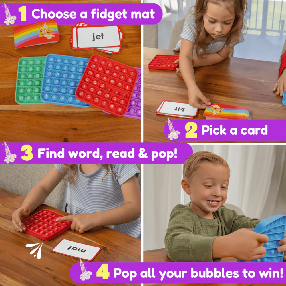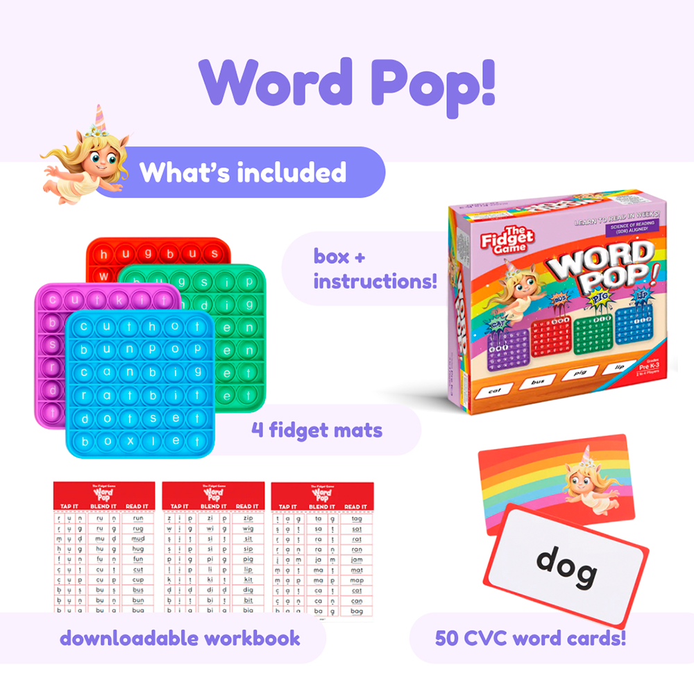 Word Pop! introduces early readers to the foundations of phonics through a playful and hands-on activity. With fidget mats and colorful cards, children practice blending sounds and reading CVC words in a way that feels engaging and fun. Ideal for Kindergarten and Grade 1, this game helps build confidence in reading fluency and word recognition.