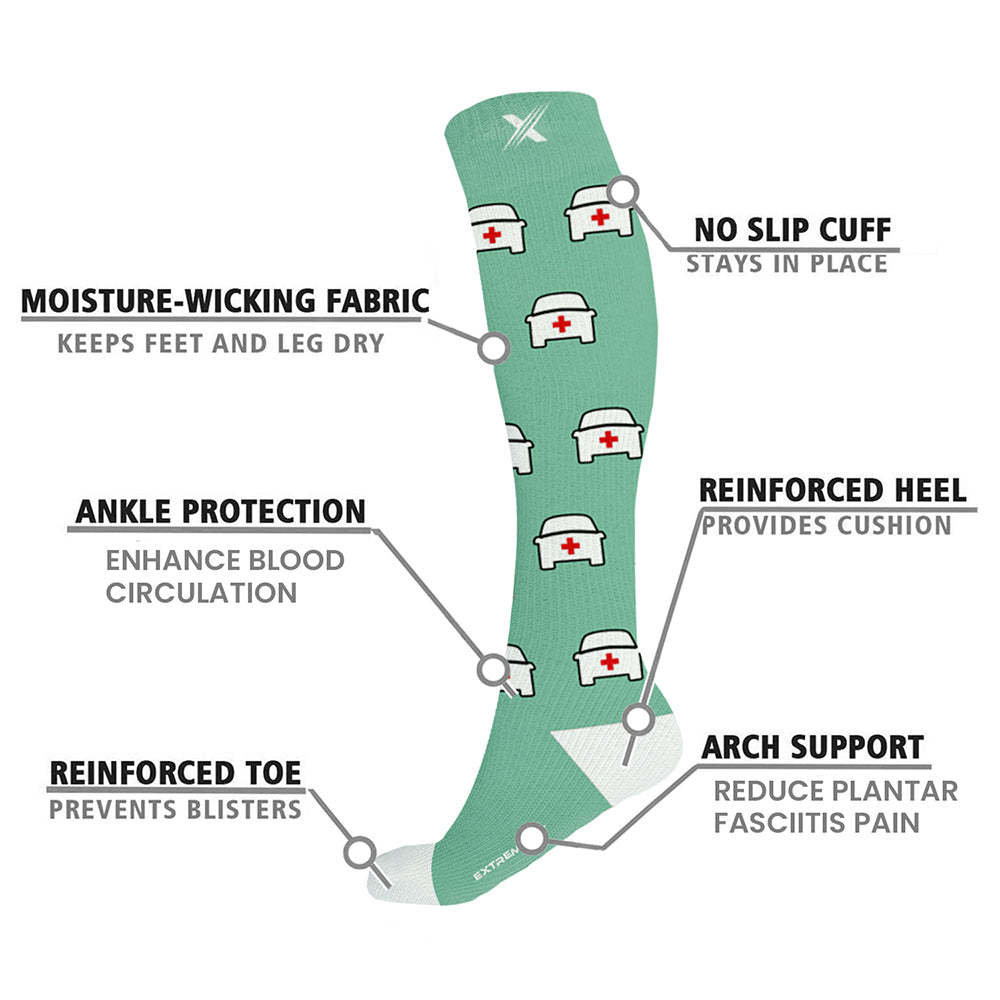 These knee-high compression socks are the ideal companion for active lifestyles or everyday wear. Designed to improve circulation, reduce swelling, and relieve aches and fatigue, these socks are ideal for running, cycling, travel, pregnancy, and more. They also offer antimicrobial properties, working to eliminate 99.9% of bacteria and fungi to ensure a comfortable, rejuvenating experience for your feet.