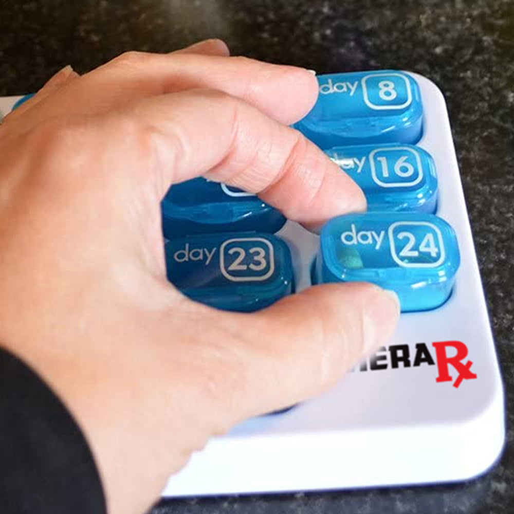 This Monthly Pill & Vitamin Organizer features numbered pods that can be kept in a tray or popped out for work or travel, so you can always keep track of your medicine wherever you go.