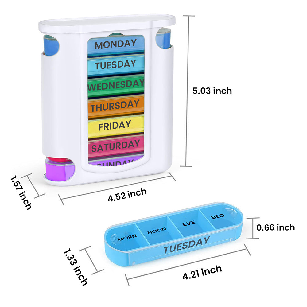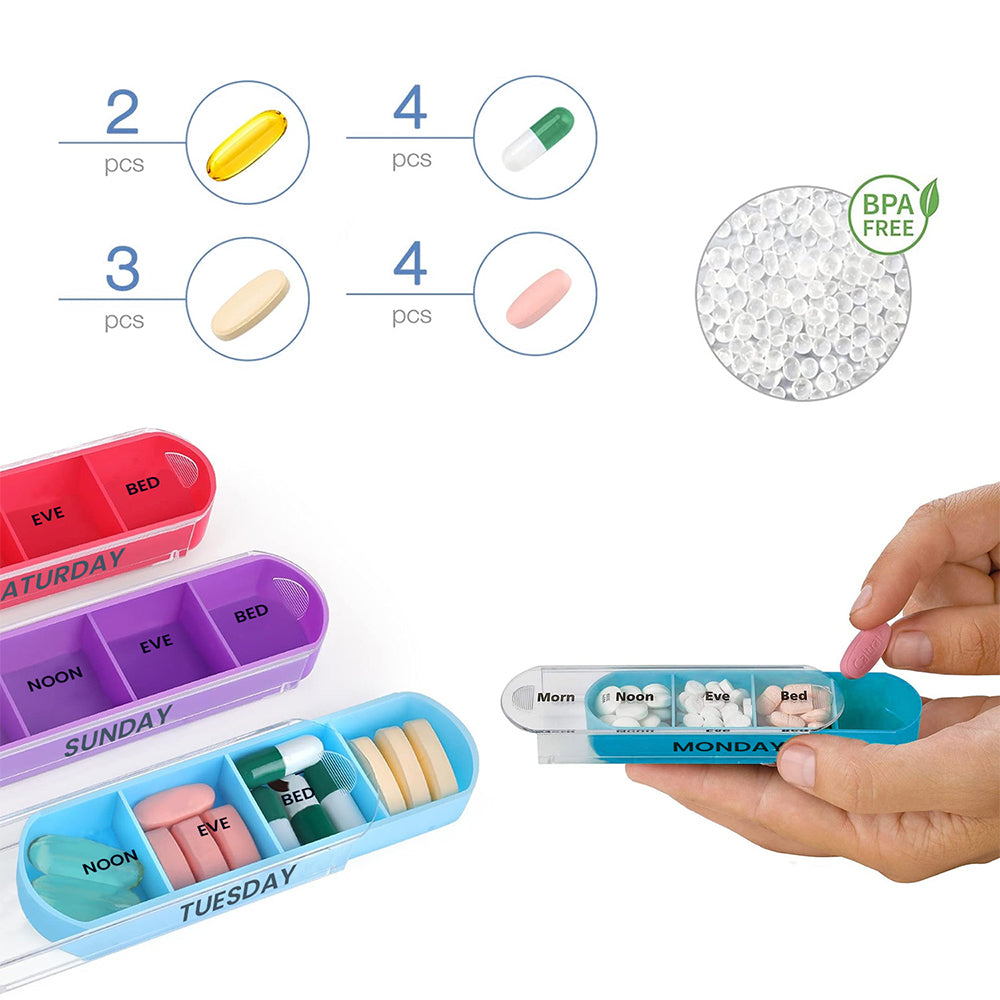 Convenient and travel-friendly, this pill organizer is ready to come with you wherever you need it. Put it in your pocket or handbag and take it with you anywhere.