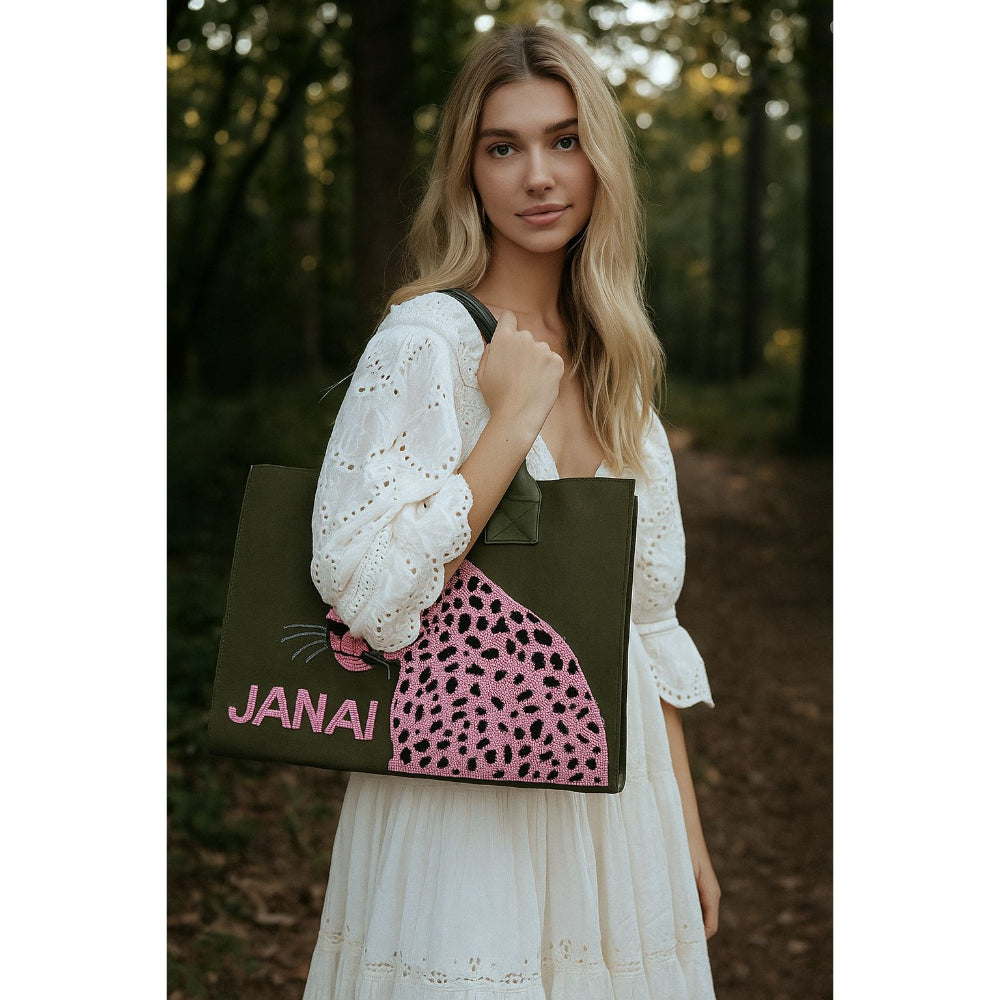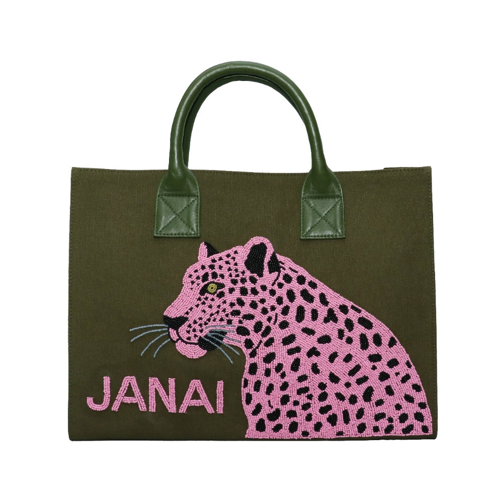 Personalized Beaded Cheetah Canvas Tote Bag