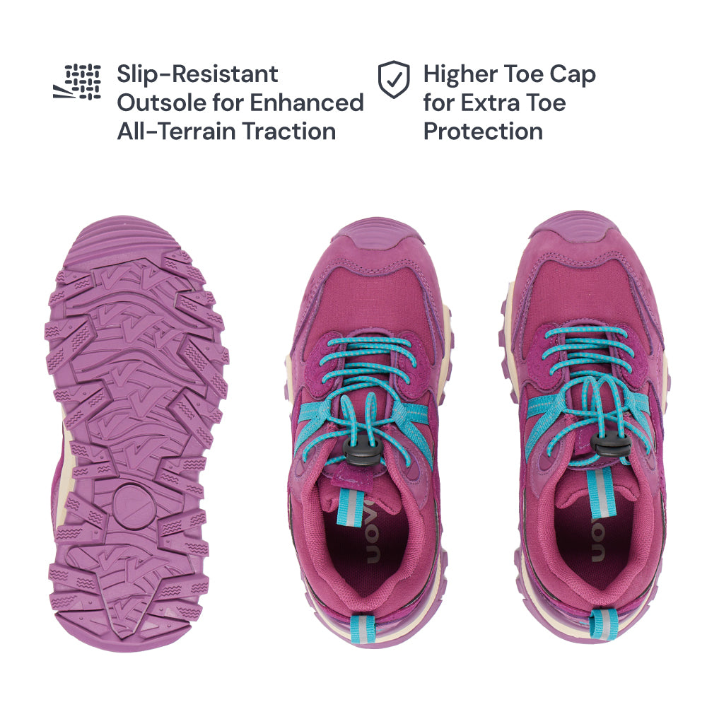 Durable and ready for anything. With a water-repellent upper, grippy traction, and an easy kid-friendly closure, these shoes are built to handle big energy and bigger adventures.