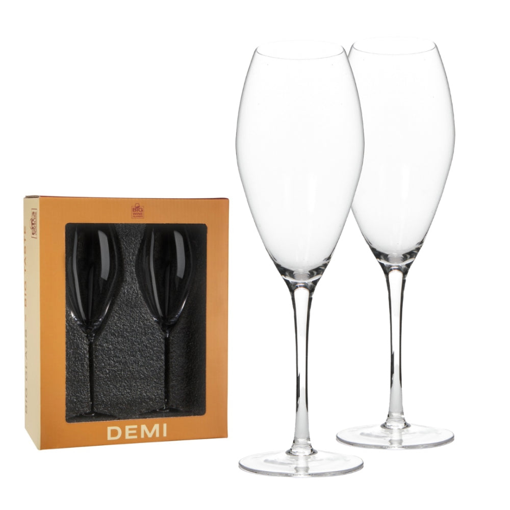 Tired of those skinny champagne flutes that hardly hold anything? Try the Demi Wine Glass then. Terrific for any kind of sparkling wine, whether it be a champagne or prosecco, or even a Kir Royale cocktail.