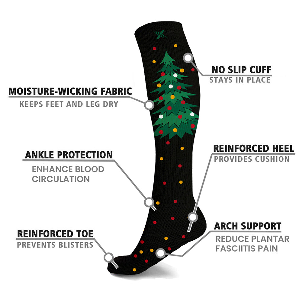 Includes three (3) pairs of Holiday Fun Knee-High Compression Socks in size and style of your choice