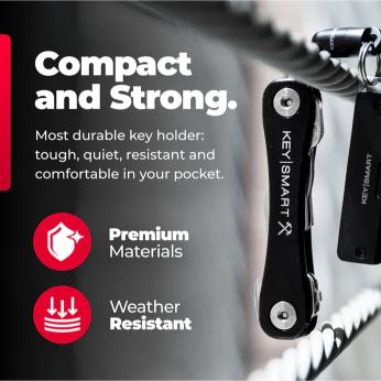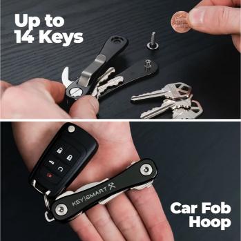 Say goodbye to bulky, jingling keychains. The KeySmart Rugged is an ultra-durable key organizer, holding up to 14 keys and coming with a built-in pocket clip and bottle opener. This key organizer is designed to fit your existing keys—no special keys required!